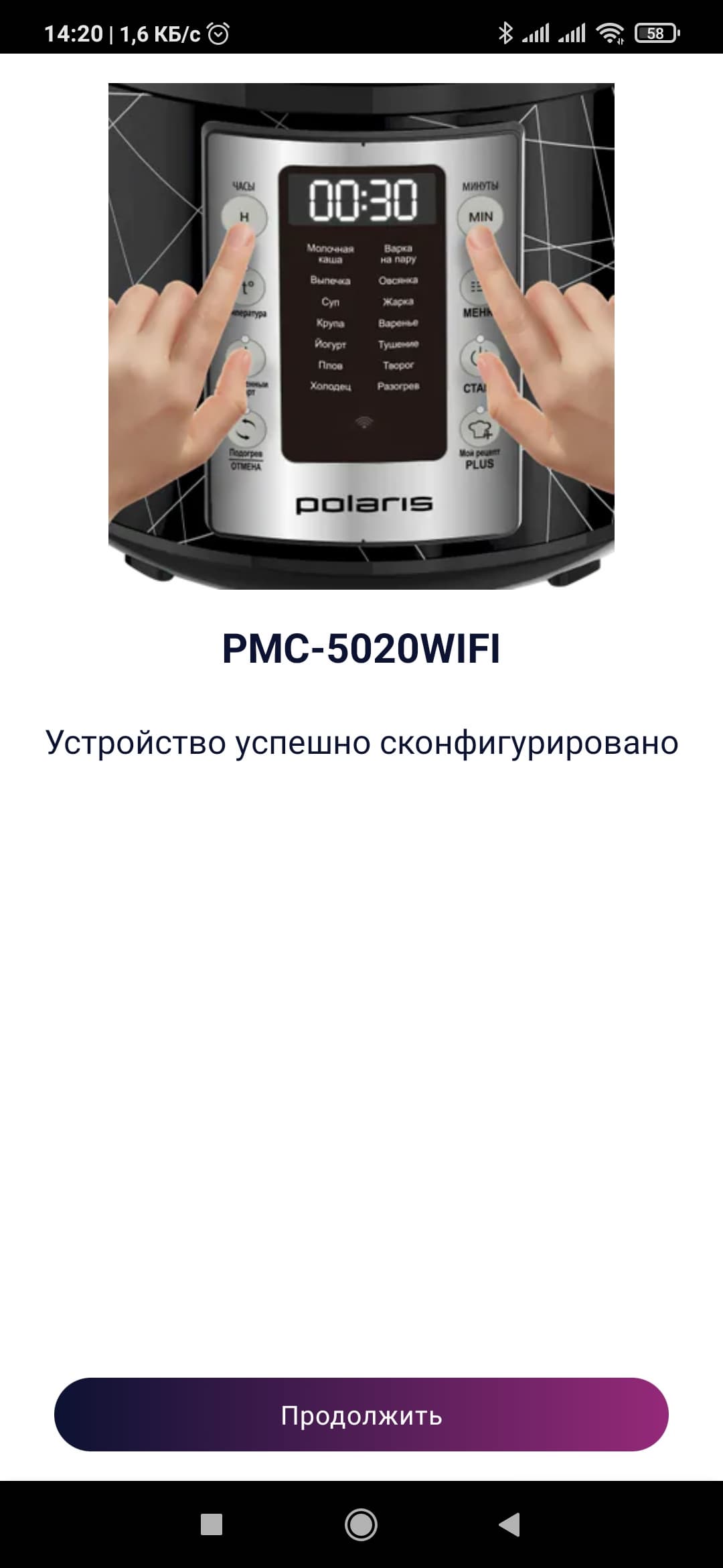 Процесс сопряжения Polaris PMC 5020 Wi-Fi IQ Home с IQ Home элементарен. Он подробно описан в инструкции, но и само приложение дает исчерпывающие подсказки.