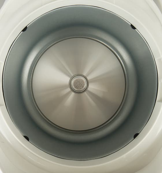 Откидная крышка поднимается нажатием на серебристый фиксатор, расположенный в передней части корпуса, над панелью управления. Крышка не самая резкая из всех, что мы видели, но немного придерживать ее во время открывания все же стоит.