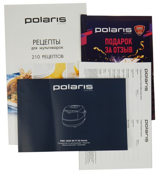 Руководство по эксплуатации Polaris PMC 5040 Wi-Fi IQ Home напечатано на плотной глянцевой бумаге в виде брошюры А5 формата. Информация четко структурирована, изложена простым языком, благодаря чему читается и воспринимается легко.