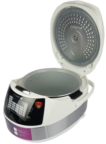 Керамическое покрытие вместительной чаши выглядит качественным, пища во время приготовления не пригорает, засчет чего мыть емкость легко. Ручки не нагреваются.