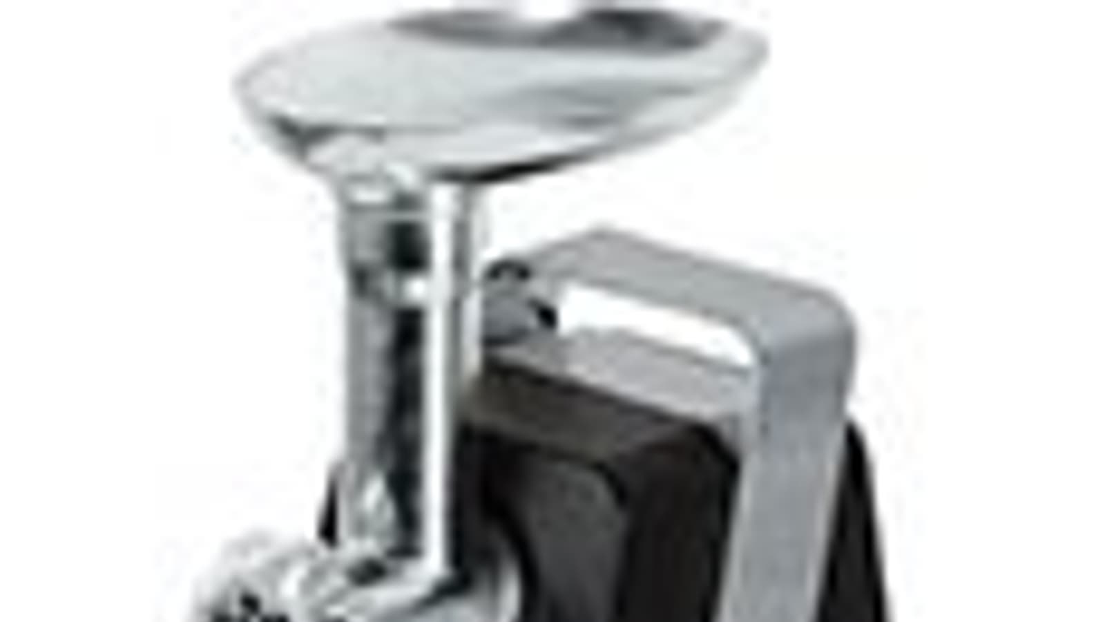 Высота крепления насадки мясорубки более чем достаточна для того, чтобы разместить тару, в которую будет попадать готовый фарш. Лоток для подачи мяса металлический, имеет овальную форму. На первый взгляд кажется невместительным, но в ходе тестов стало ясно, что его размера хватает для решения всех поставленных задач.