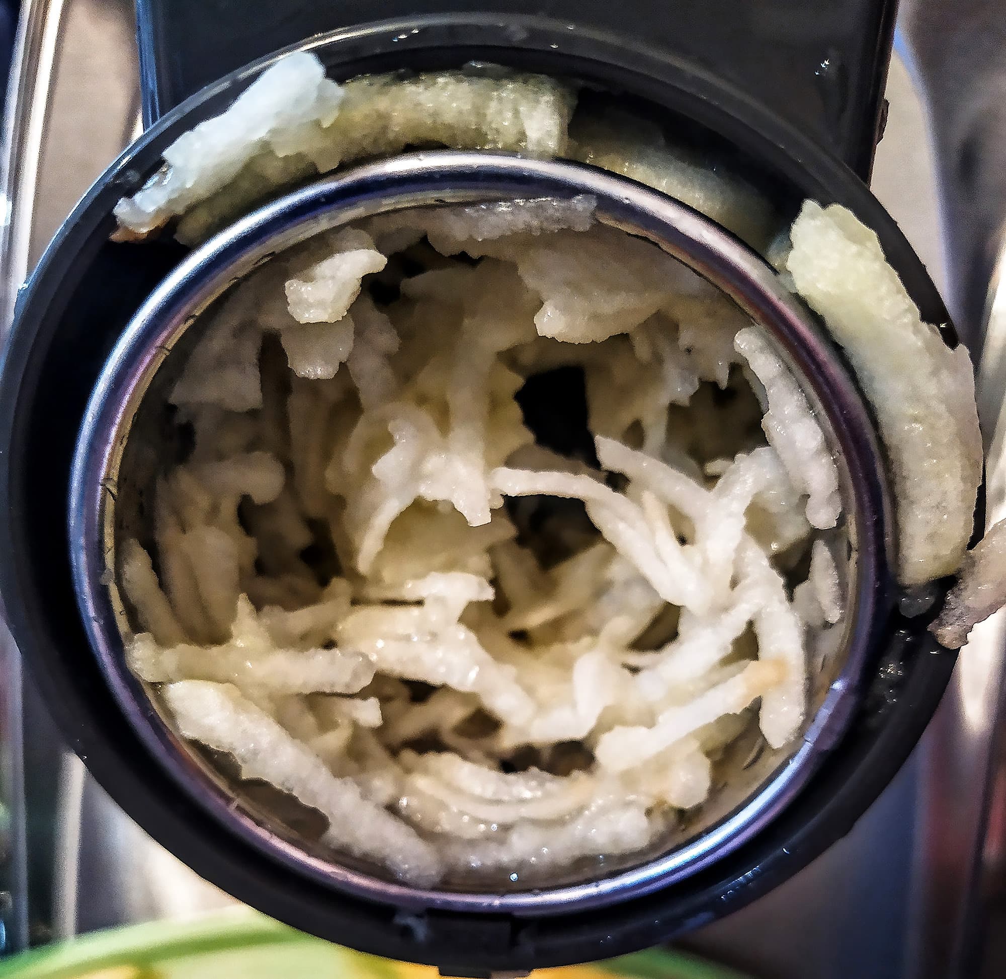 На оси шнека осталось совсем немного кусочков кожуры.
