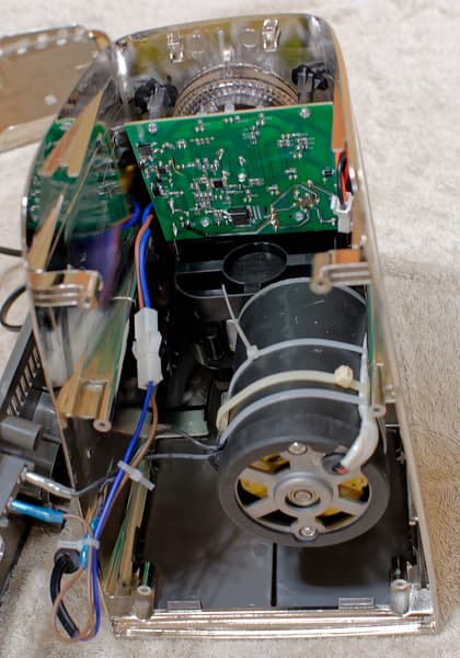 Плата со светодиодами голубой подсветки и блоком управления скоростями не изобилует сложной электроникой.