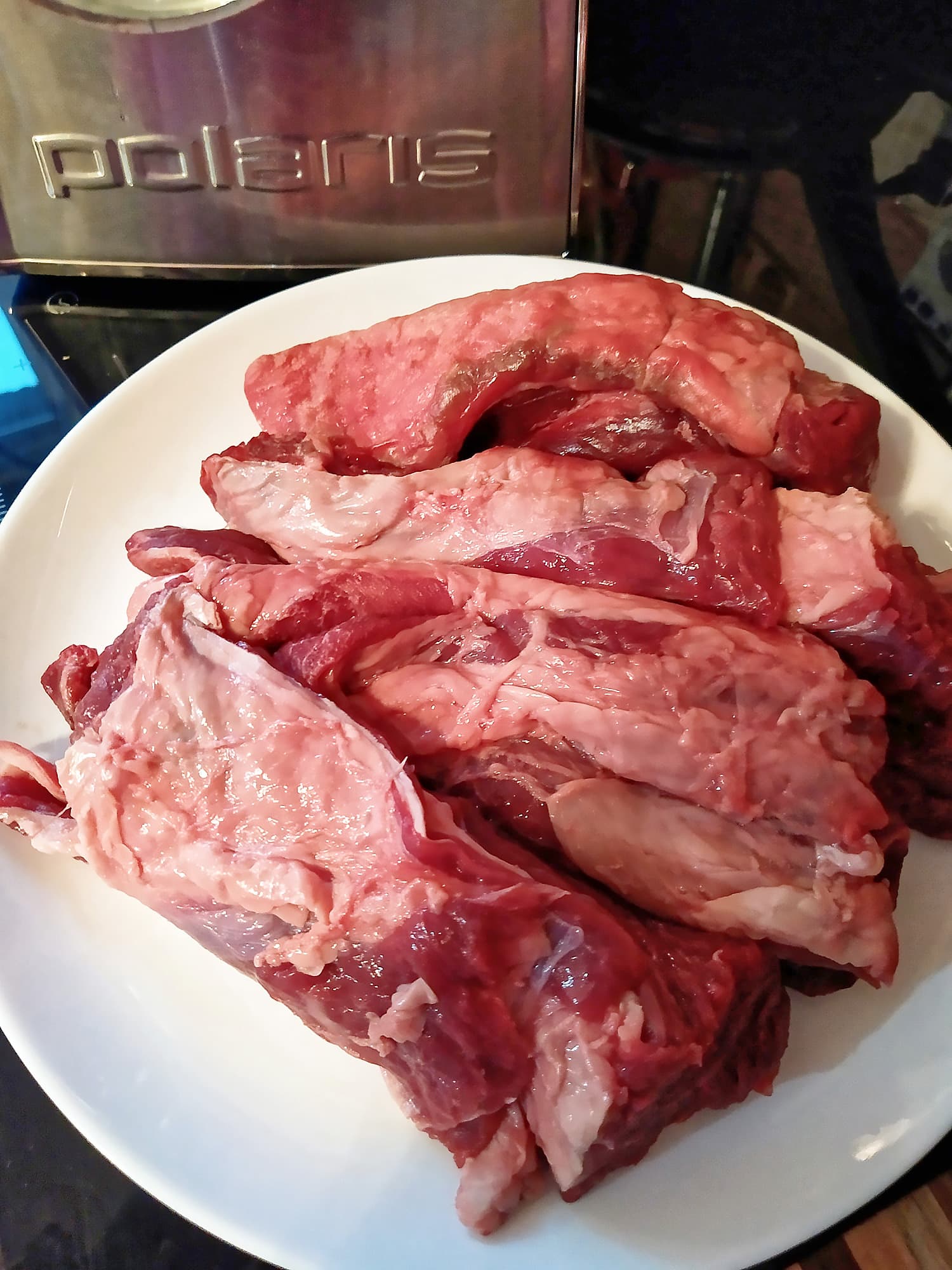 Мы взяли мясо из бедренной части. Много пленок и сухожилий, чтобы устроить прибору настоящий стресс-тест.