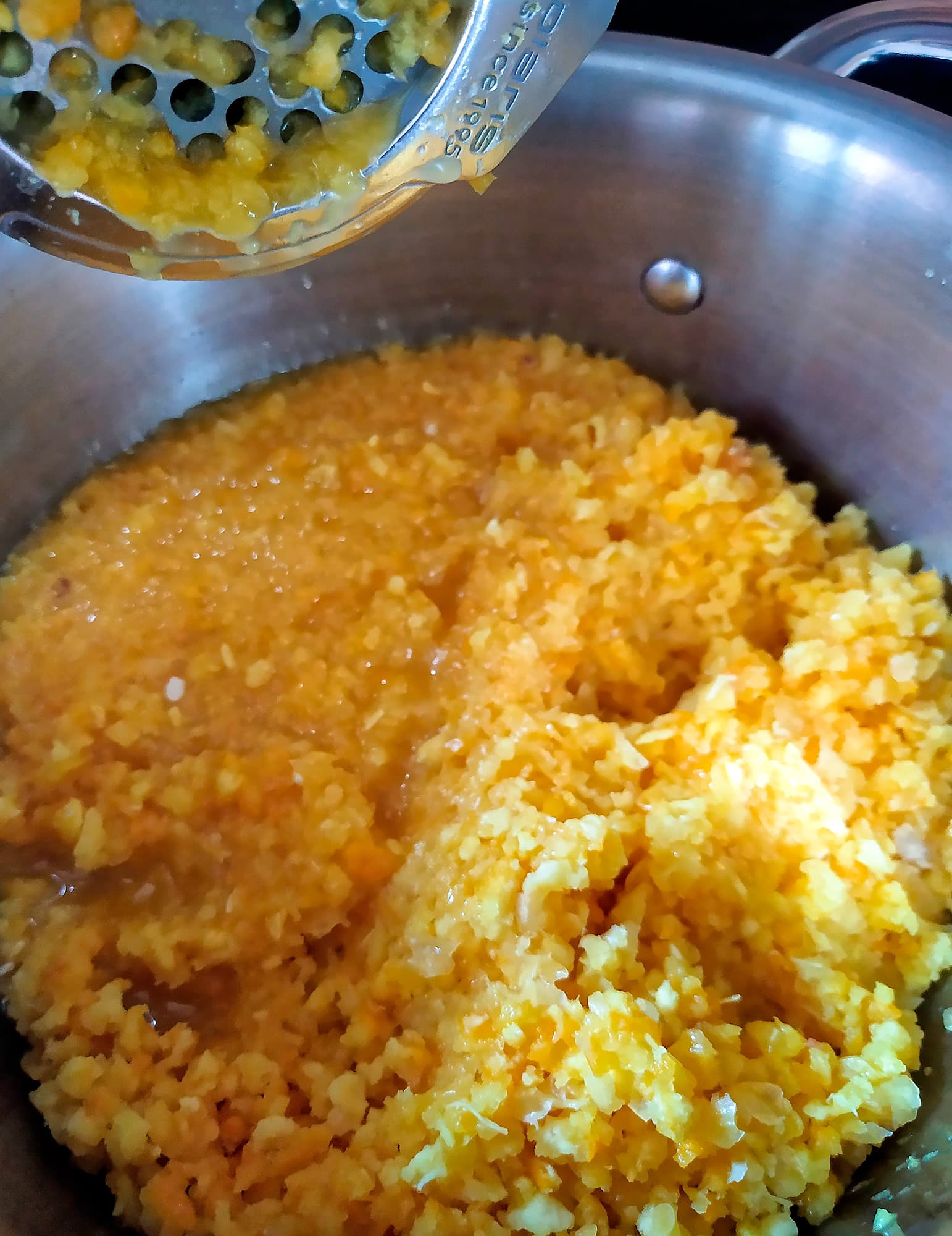 Полученную массу мы проварили с 0,5 кг сахара с добавлением корицы и гвоздики. Получили отличный горьковатый джем, идеальный для утренних тостов с хорошим сливочным маслом.