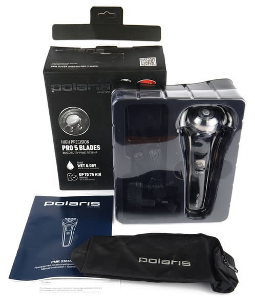 Попавшая к нам в тестовую лабораторию электрическая бритва Polaris PMR 0305R Wet&Dry Pro 5 Blades оказалась весьма похожей на многие другие модели, выпущенные под брендом Polaris (на момент подготовки статьи на официальном сайте их представлено четыре штуки). Все эти бритвы оснащены одним режущим блоком Pro 5 Blades (или Pro 5 Blades+), имеют похожий внешний вид и предсказуемо схожие возможности.