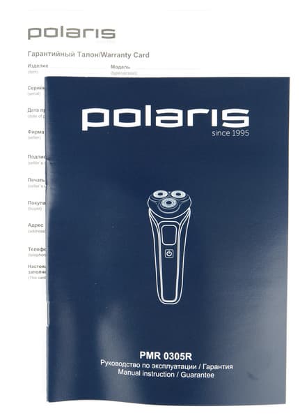 Как и у других бритв Polaris, инструкция сообщает, что «бритье будет лучшим, если кожа будет сухой», что звучит несколько странно в контексте того, что бритва подходит в том числе и для влажного бритья. Наш опыт подсказывает, что бриться лучше с пеной либо со специальным средством. Впрочем, проверим это утверждение в ходе тестирования.