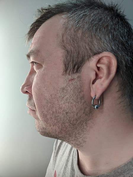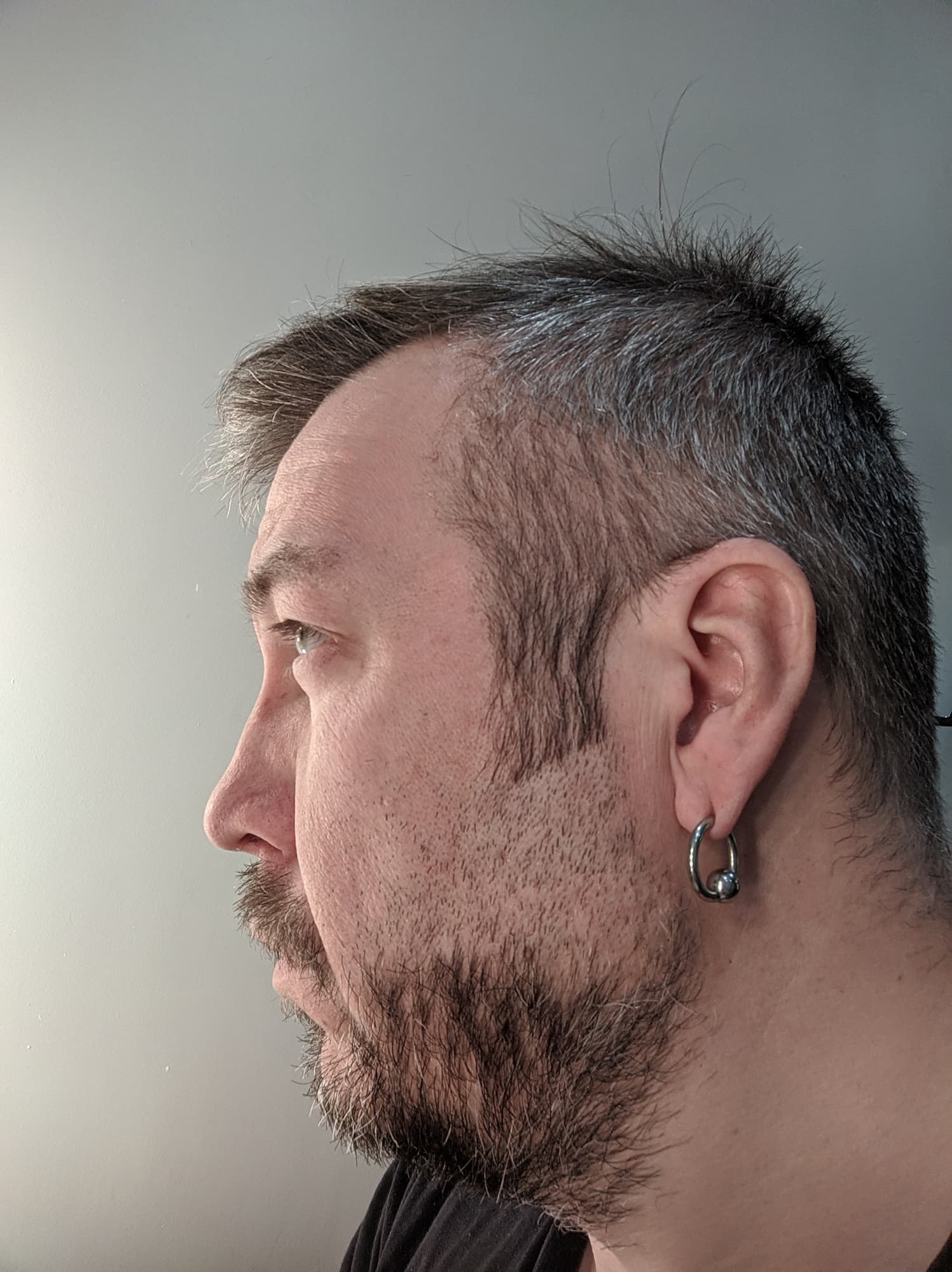 Проблемными зонами стали бакенбарды и прочие места, требующие формирования контуров.