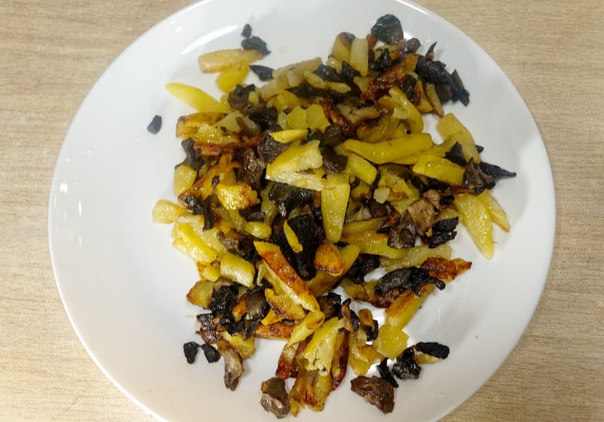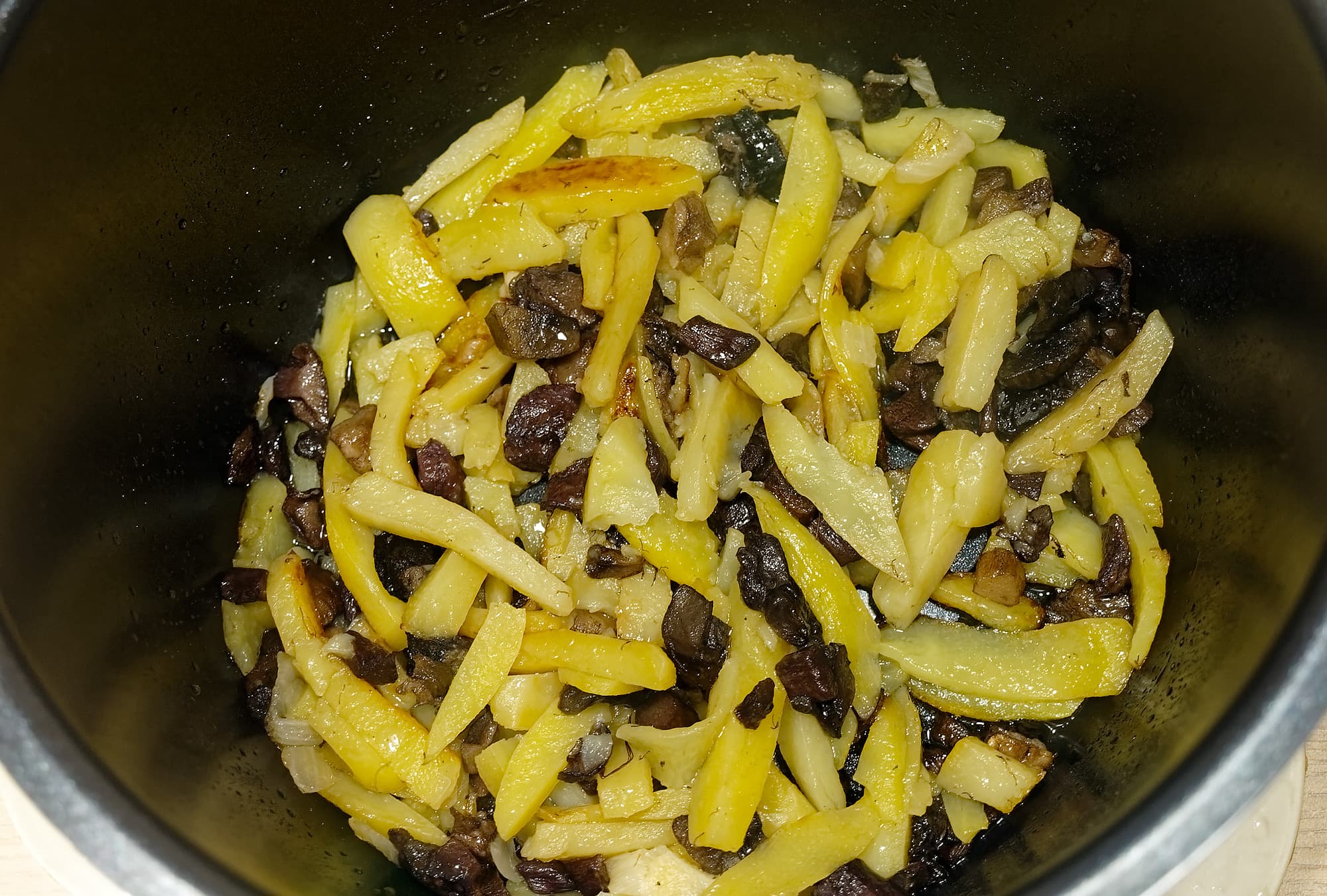 Увы, когда программа завершилась (через 25 минут), картофель и грибы приготовились, но не обжарились.