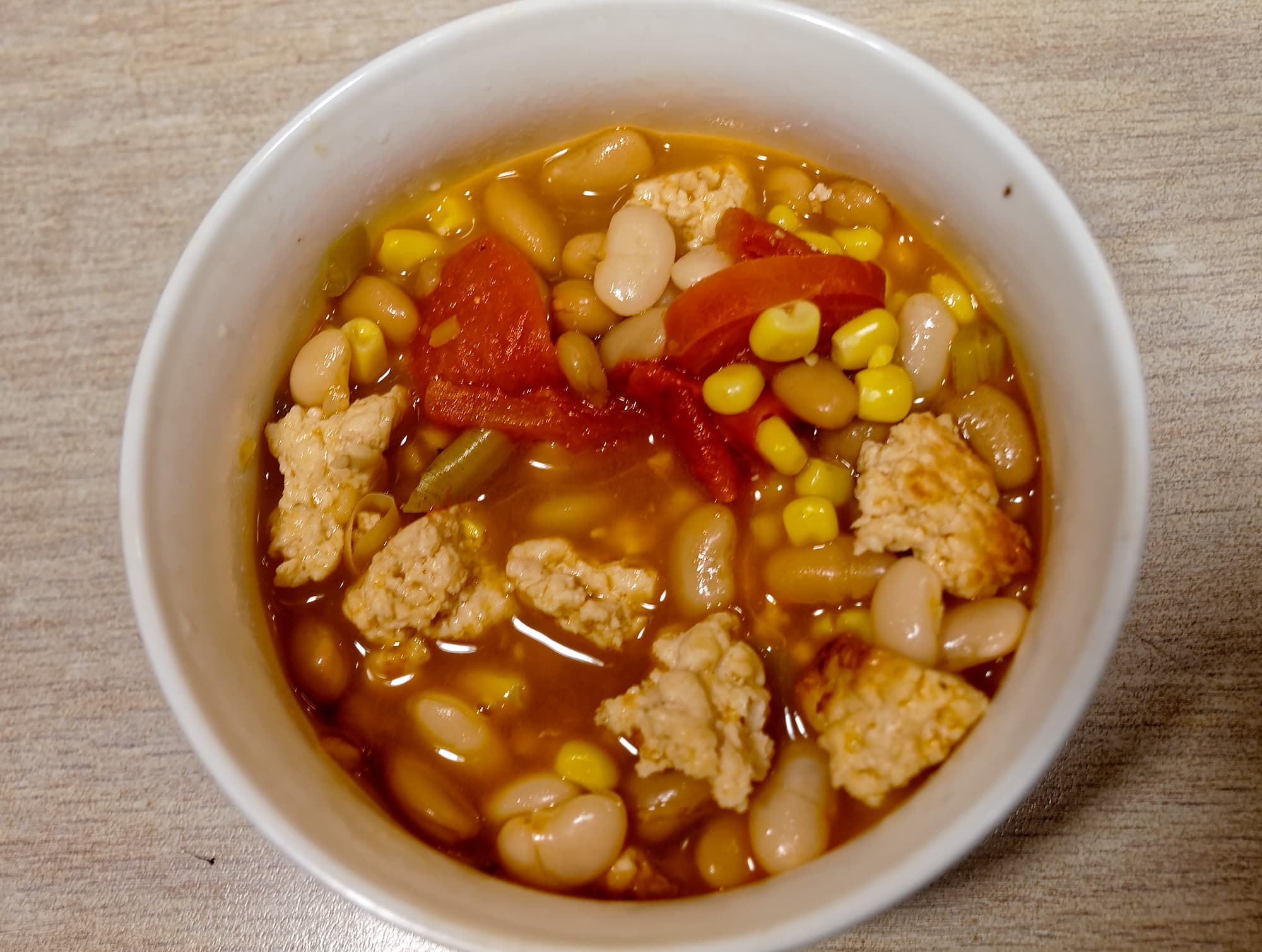 Что мы имеем в итоге? Прекрасно сбалансированное блюдо, где фасоль не разварилась, а стала мягкой и впитала в себя все ароматы. Остальные ингредиенты тоже сохранили форму и создали гармоничную картину острого и питательного блюда.