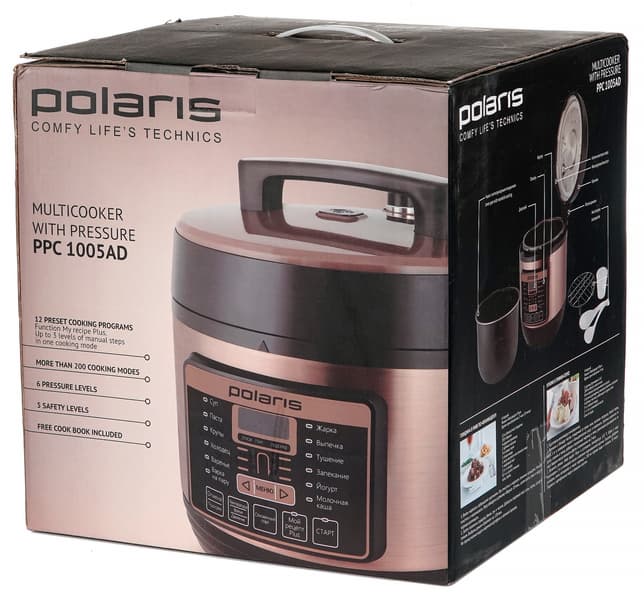 Мультиварка с давлением PPC 1005AD (Polaris почему-то избегает слова «скороварка») — достаточно доступный продукт производителя, сумевшего себя зарекомендовать как поставщика средних по цене, но надежных товаров. За долгое время нашей эксплуатации товаров фирмы Polaris большинство мирно доживало свой век и менялось только по причине покупки нового устройства с расширенными функциями или по причине потери товарного вида. Гибрид мультиварки и скороварки — повод познакомиться с новым продуктом компании и расширить свое меню.