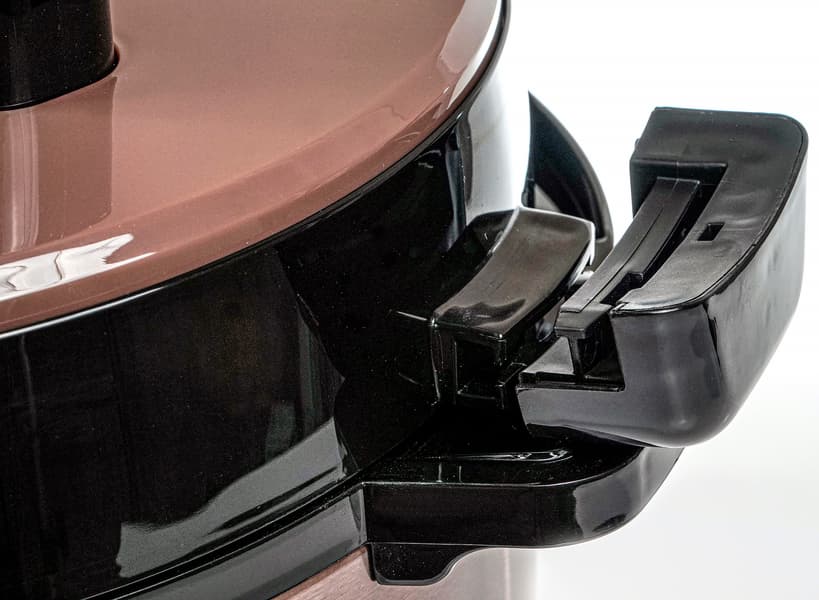 С непривычки кажется нелогичным механизм закрывания и открывания крышки: для этого фиксатор находится либо в открытом, либо в закрытом положении, а сама крышка вращается вокруг корпуса, пока не совместятся пазы. На первых порах крышка у нас часто полностью снималась и оказывалась в руках. С другой стороны, возможность отделять крышку для того, чтобы ее помыть — это очень удобно. Клапан выпуска пара тоже легко отделяется и может быть вымыт. Но, как сказано выше, это дело привычки и автоматизма движений.