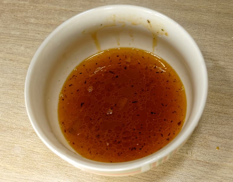 Выставлена программа «Запекание», время — 50 минут с закрытой крышкой. По итогам мясо очень легко отделялось от кости, горчица образовала приятную корочку, но все же хотелось бы большей плотности — скажем, для сэндвичей это мясо уже не очень годилось.