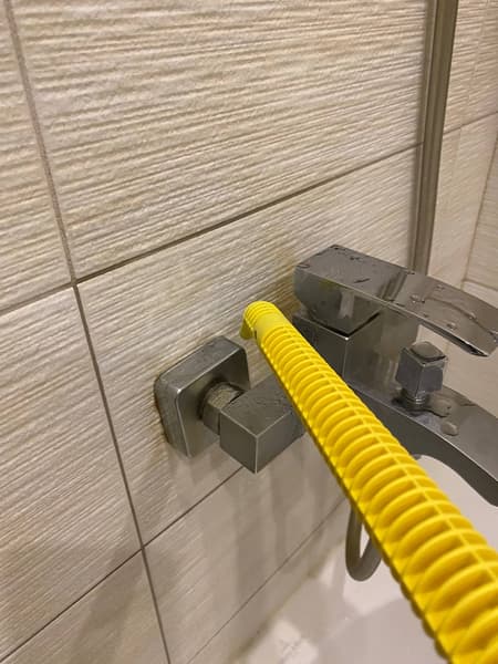 Для локальных задач — идеально: очистить плитку, фурнитуру, стекло, швы и т. д., все удобно и быстро. Но каждые 10 минут нужно пополнять воду. При этом производитель отдельно предупреждает, что не рекомендуется использовать прибор непрерывно более 30 минут, чтобы избежать перегрева пластика и деформации насадок. Мы, конечно, проверили и проработали им около 40-45 минут подряд. Корпус слегка нагрелся, но никаких проблем не возникло.