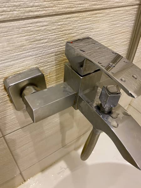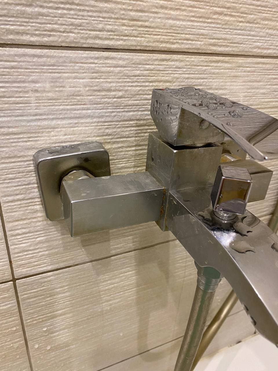 Нам предстояло очистить поверхность вокруг смесителя и место его крепления к стене, выложенной кафелем.