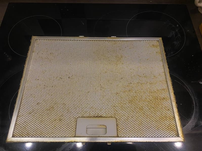 На очереди была решетка вытяжки, которую мы давно не чистили. Для работы выбрали щетку из нержавеющей стали, идеально подходящую для удаления стойких загрязнений и жировых отложений.