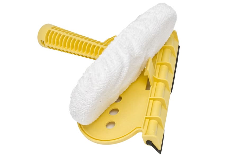 К комплекту насадок также прилагается мини‑швабра для отпаривания и насадка для мытья стекол и зеркал. На фото они представлены в разобранном виде: слева — мини‑швабра, справа — насадка для стекол и зеркал.