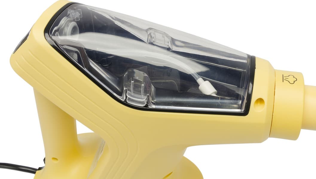 Объем резервуара составляет 295 мл, и этого хватает примерно на 10 минут непрерывной работы. Этого достаточно для локальной уборки, но при масштабной чистке придется периодически доливать воду.