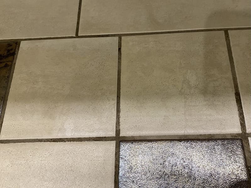 Итог: прибор уверенно справляется даже с трудными и застарелыми загрязнениями на пористой плитке.