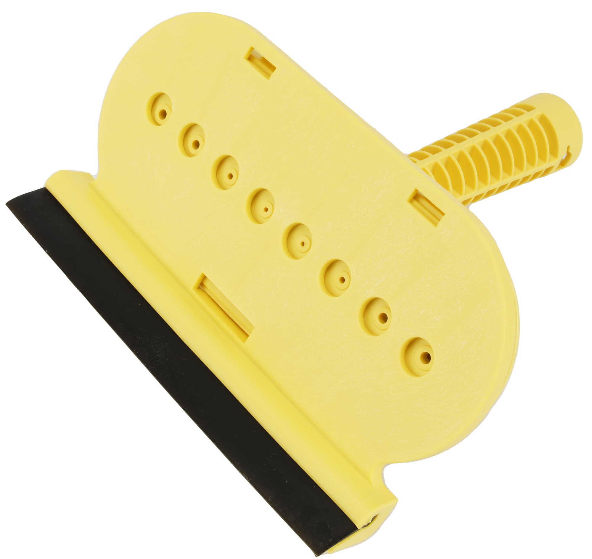 На нее можно надеть белую салфетку-тканевый чехол и использовать прибор для очистки мягкой мебели, штор, другого текстиля и отпаривания одежды, либо закрепить насадку с черным резиновым скребком для очистки стекол и зеркал.