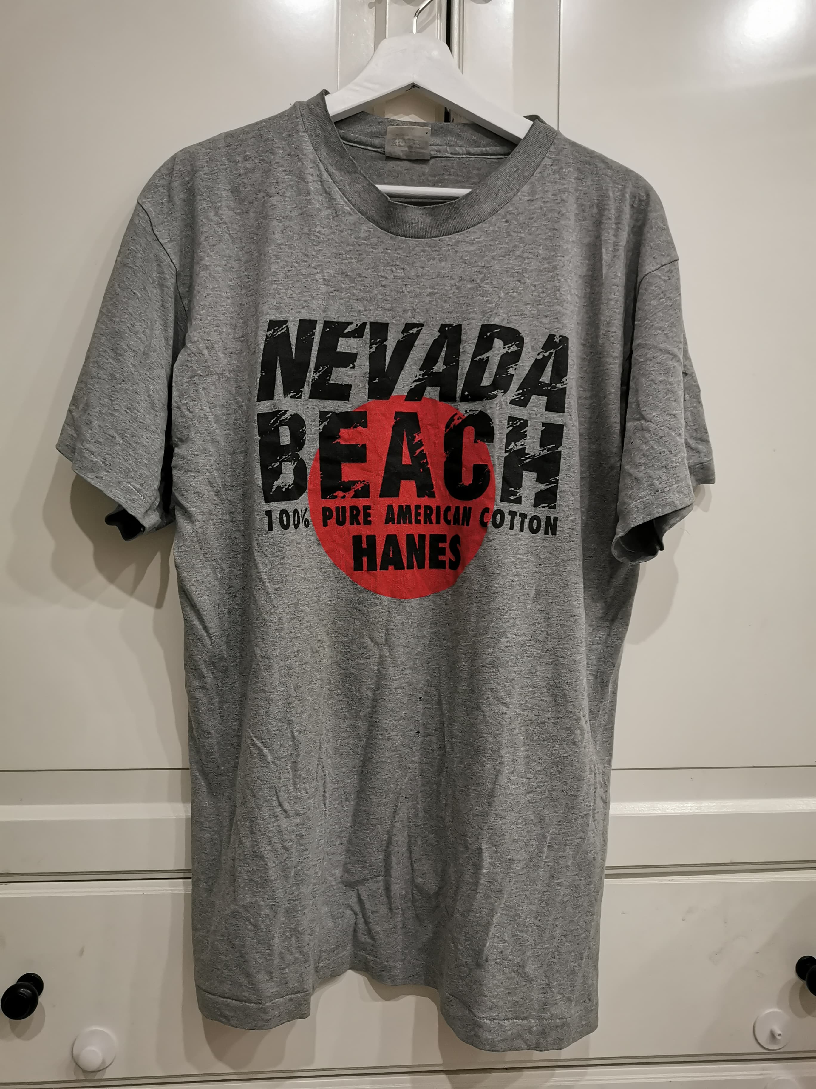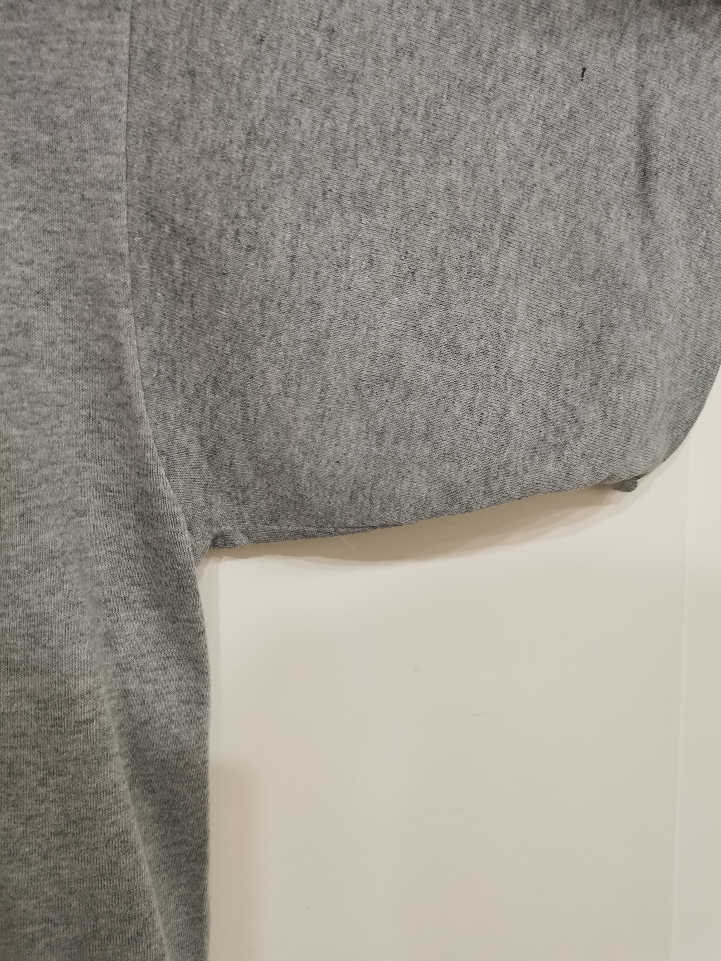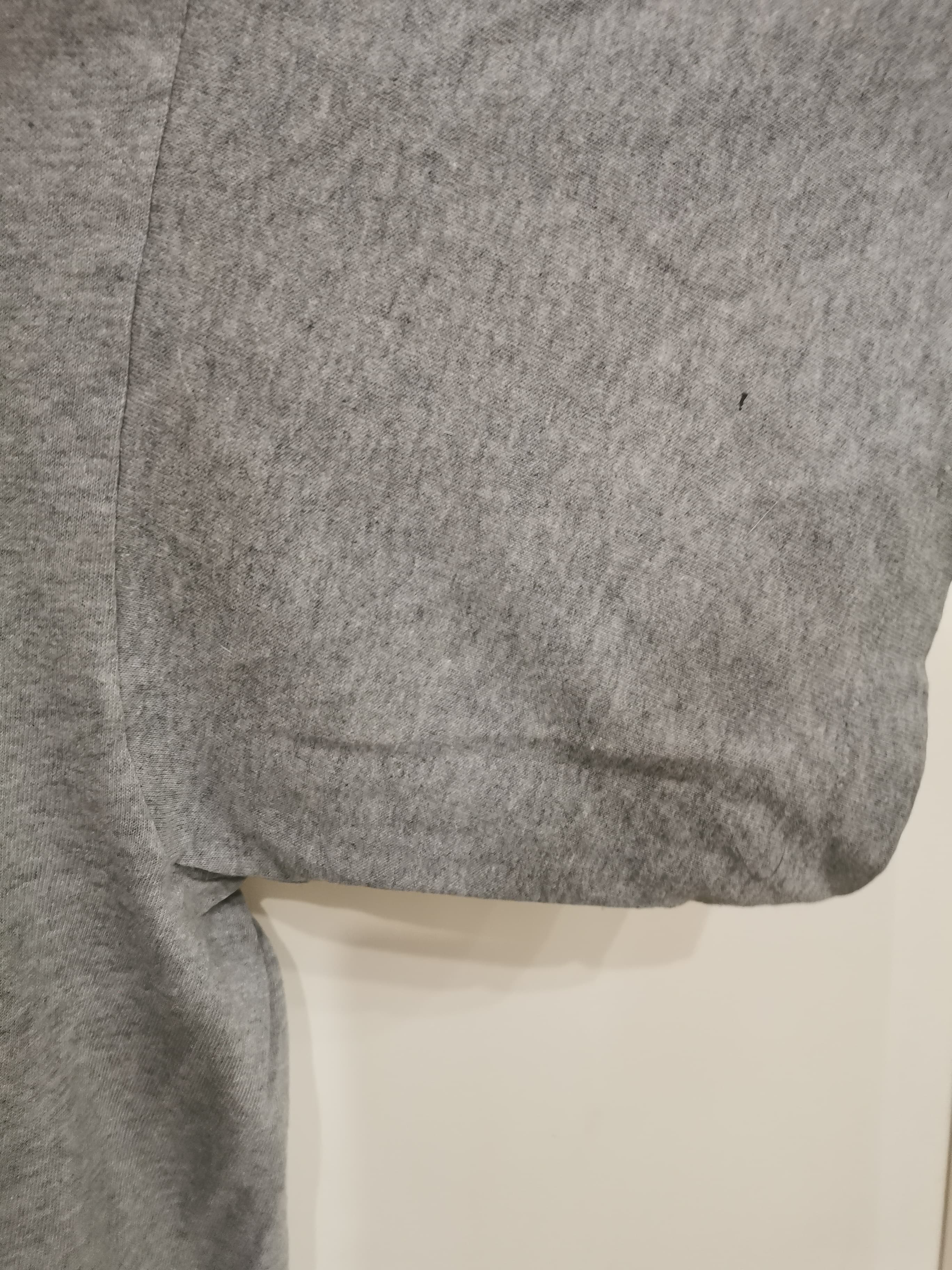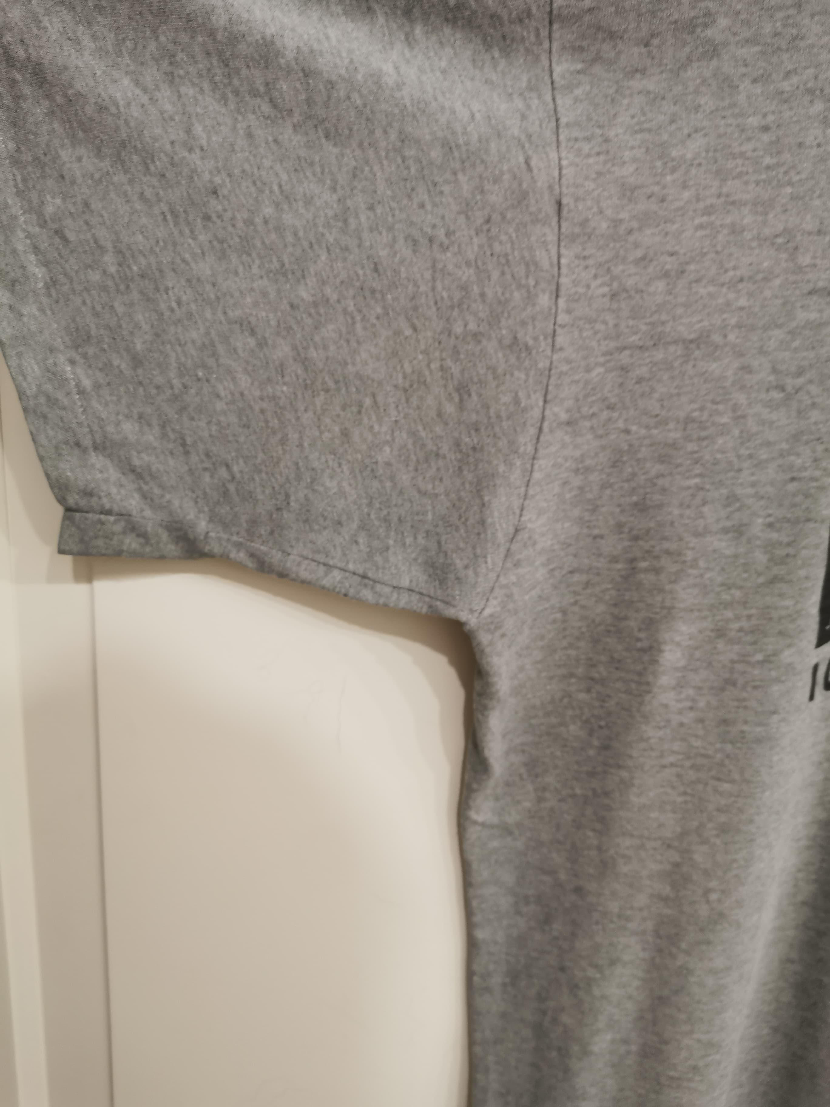 Следом мы взяли хлопковую футболку с принтом и растянутым воротом.