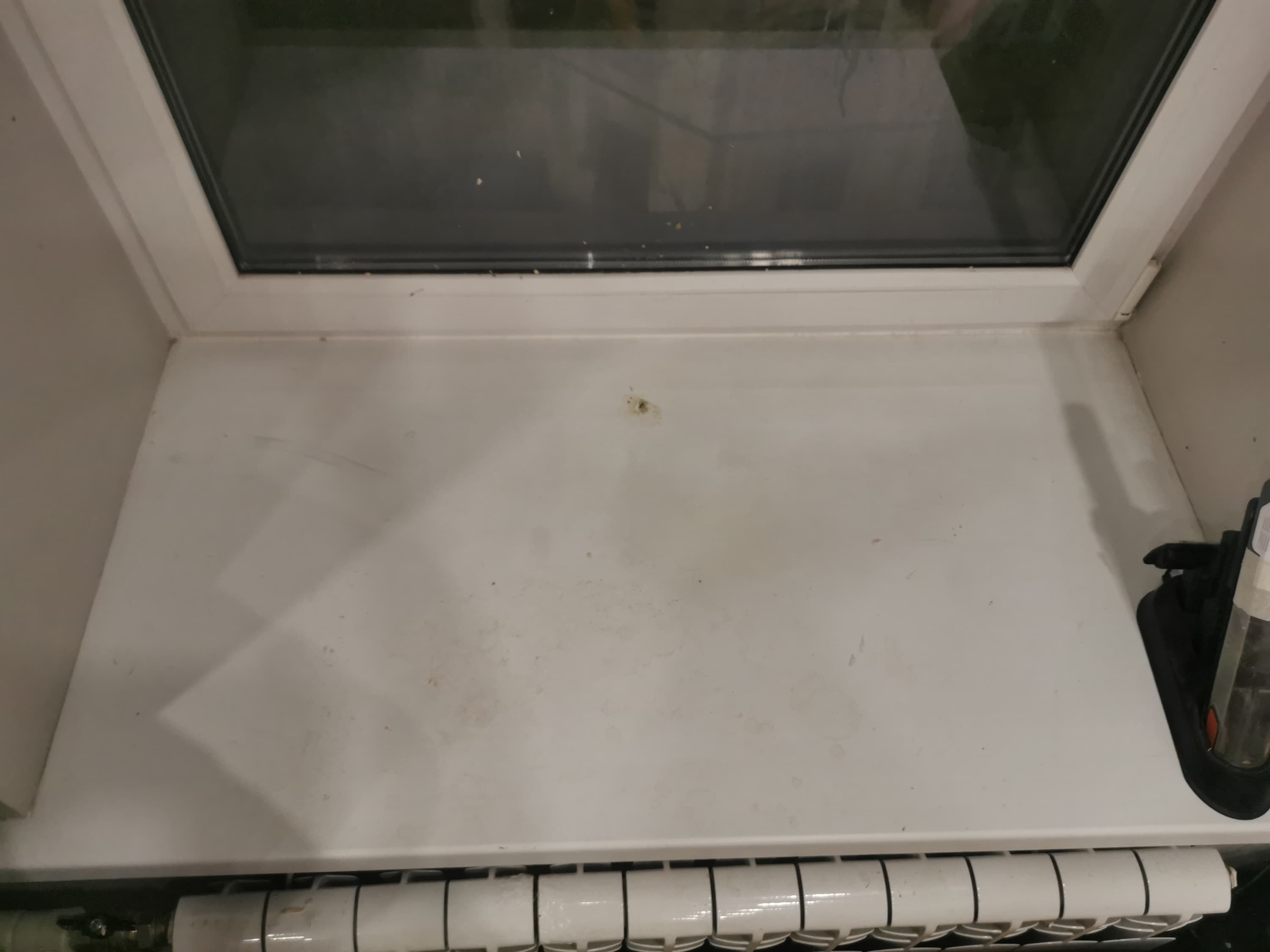 По итогу мы получили чистый и дезинфицированный паром подоконник.