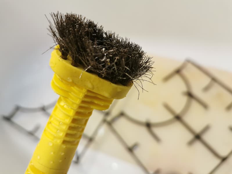 Далее мы взялись за очистку металлических решеток с помощью насадки с щетинками из нержавеющей стали.