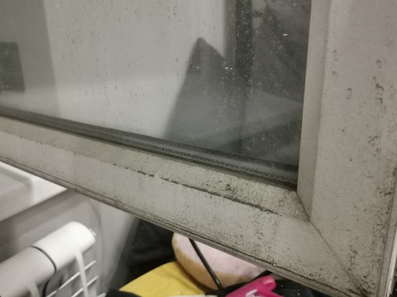 На середине пути по очистке подоконника мы решили сделать фотографию двух его половин — чистой и грязной. Разница хоть и не контрастная, но заметная.