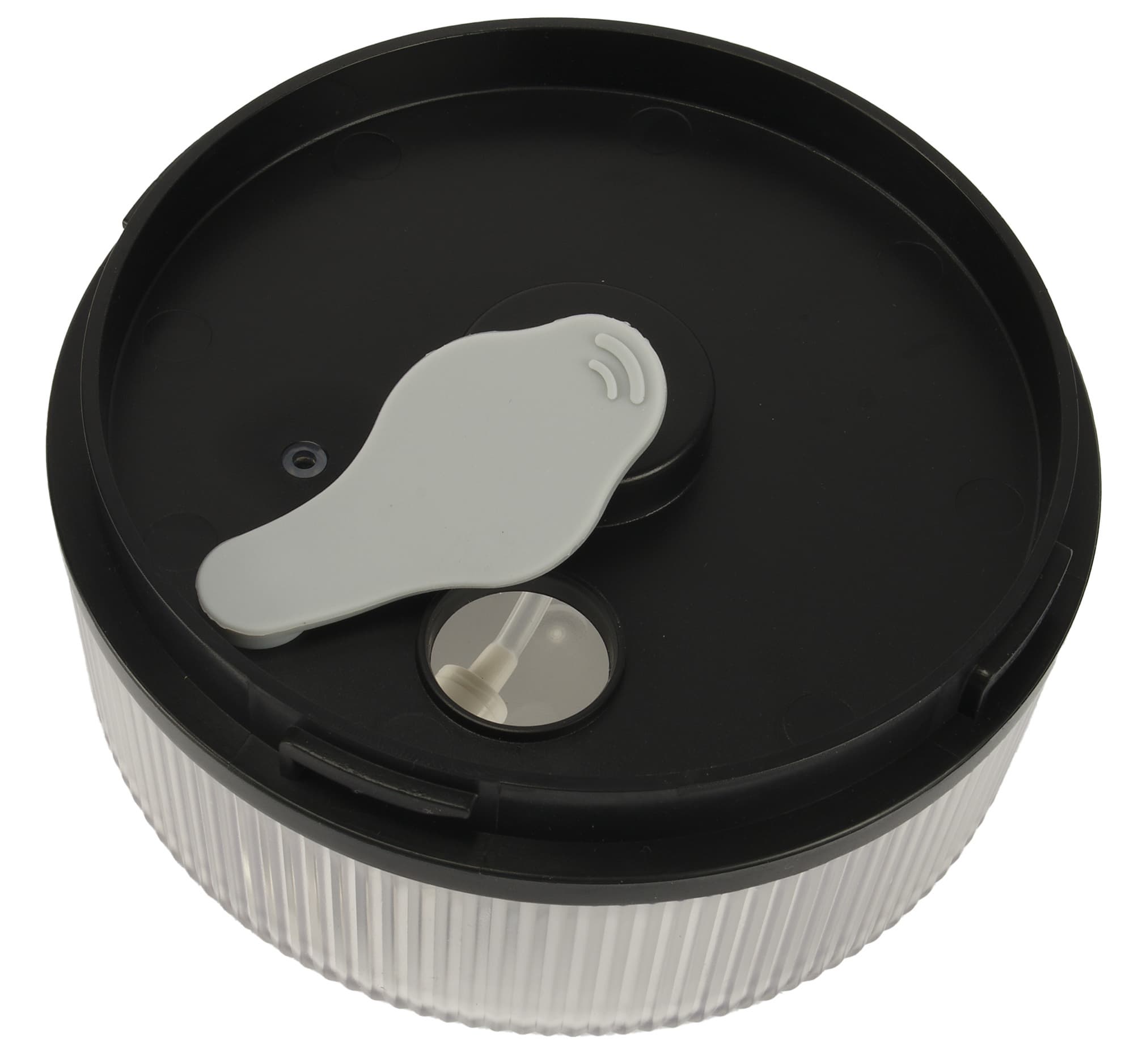 На лицевой стороне моторного блока нанесены подсказки с изображением открытого и закрытого замка, помогающие зафиксировать резервуар с водой. На самом баке нанесена белая точка, которую как раз нужно совместить с одним из рисунков, чтобы зафиксировать или открутить контейнер.