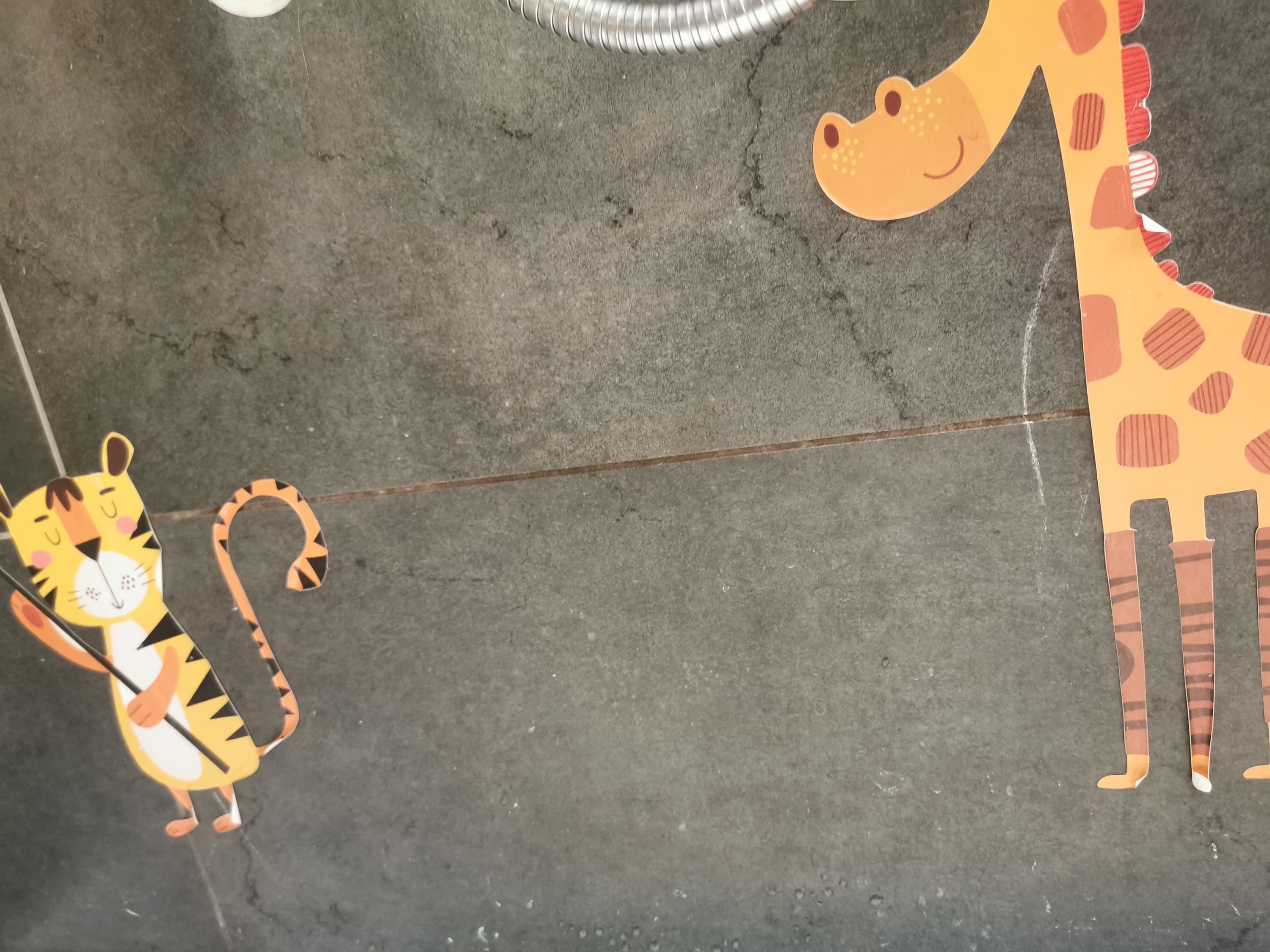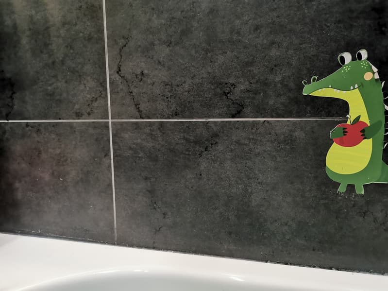 В некоторых местах на кафеле имелись остатки клея от снятых детских наклеек, которые не были зачищены полностью.