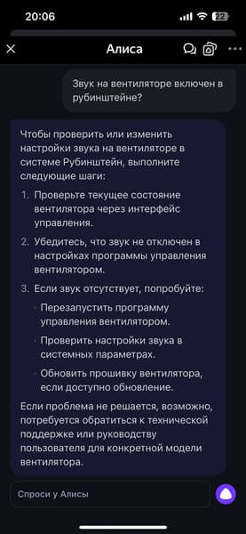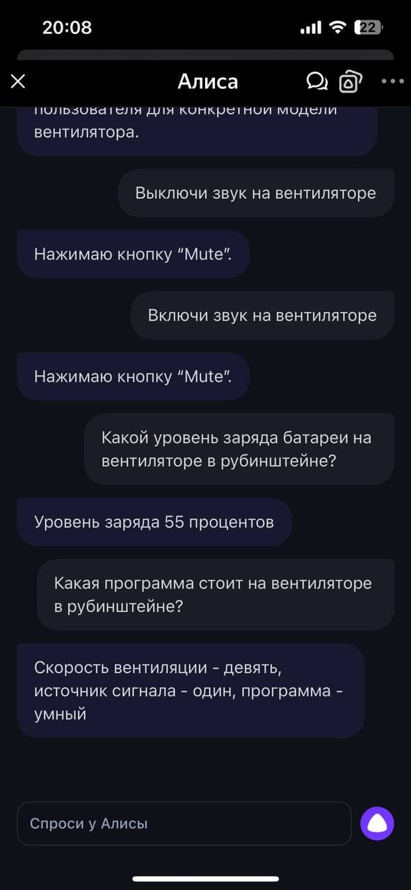 Подводя итоги, можем с облегчением сказать, что даже голосовой помощник у данного вентилятора отлично «прокачан». К сожалению, пока что столь подробные и исправно работающие голосовые команды — это редкость, и всегда приятно увидеть более-менее успешный кейс.
