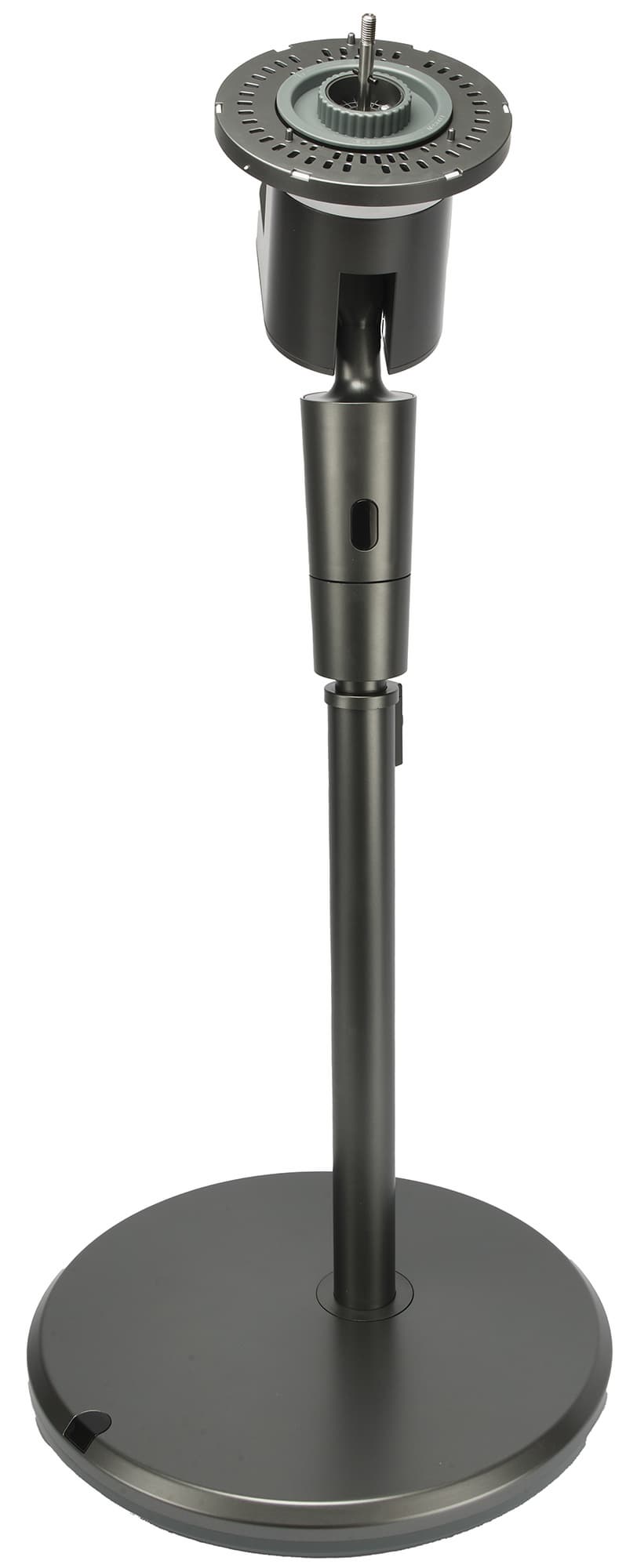 Рассматривая ножку отдельно, видим, что она является телескопической и самостоятельно раздвигается, отпружинивая вверх, если нажать круглую кнопку на узкой части.
