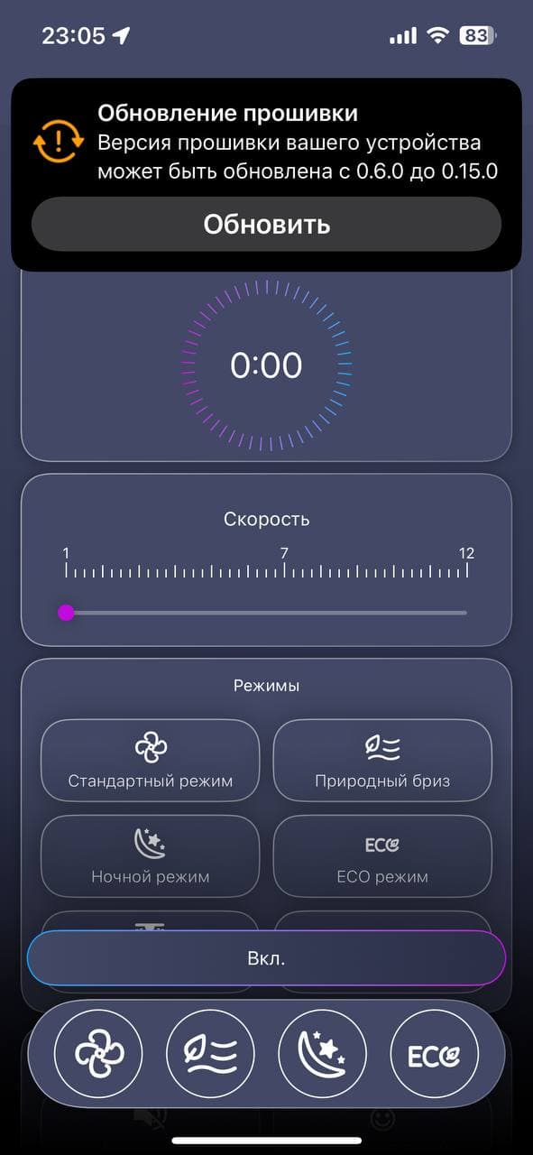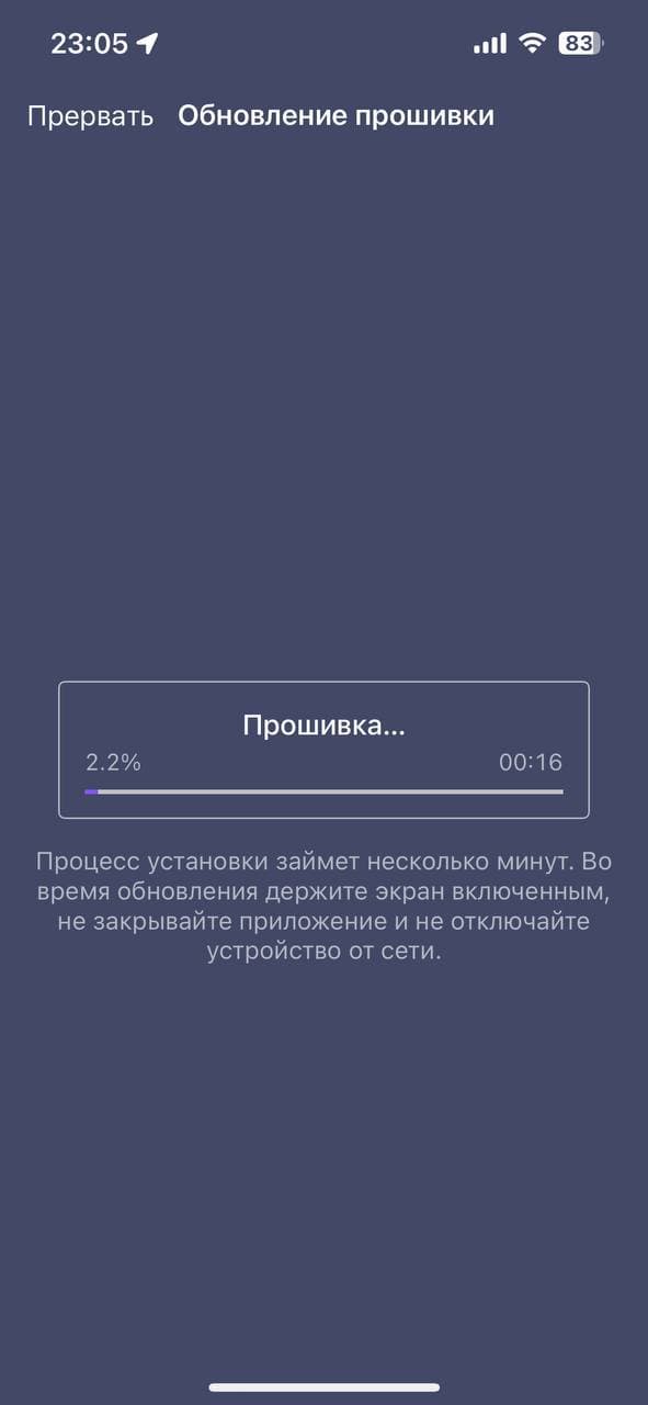 Приложение сообщает нам, что требуется обновить прошивку, что мы обязательно делаем и по завершению можем приступать непосредственно к знакомству с начинкой пункта управления.