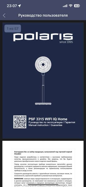 А также поучаствовать в тестировании, делясь своими данными из приложения, проверить свое соединение, поделиться доступом к вентилятору с близким, отправим им ссылку прямо на него в личный кабинет, включить уведомления и даже просмотреть всю 56-страничную инструкцию, что удобно, если бумажная версия затеряется.