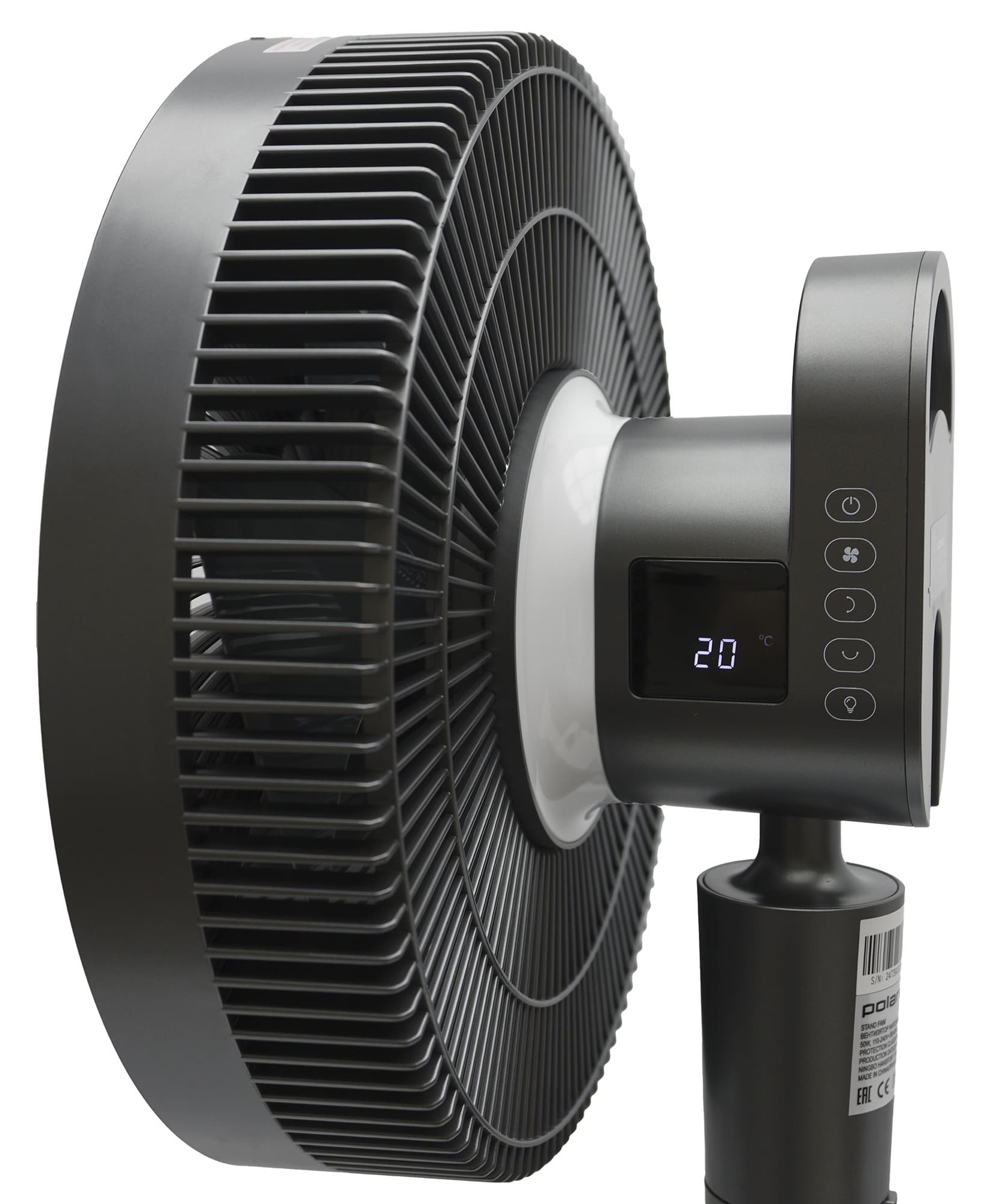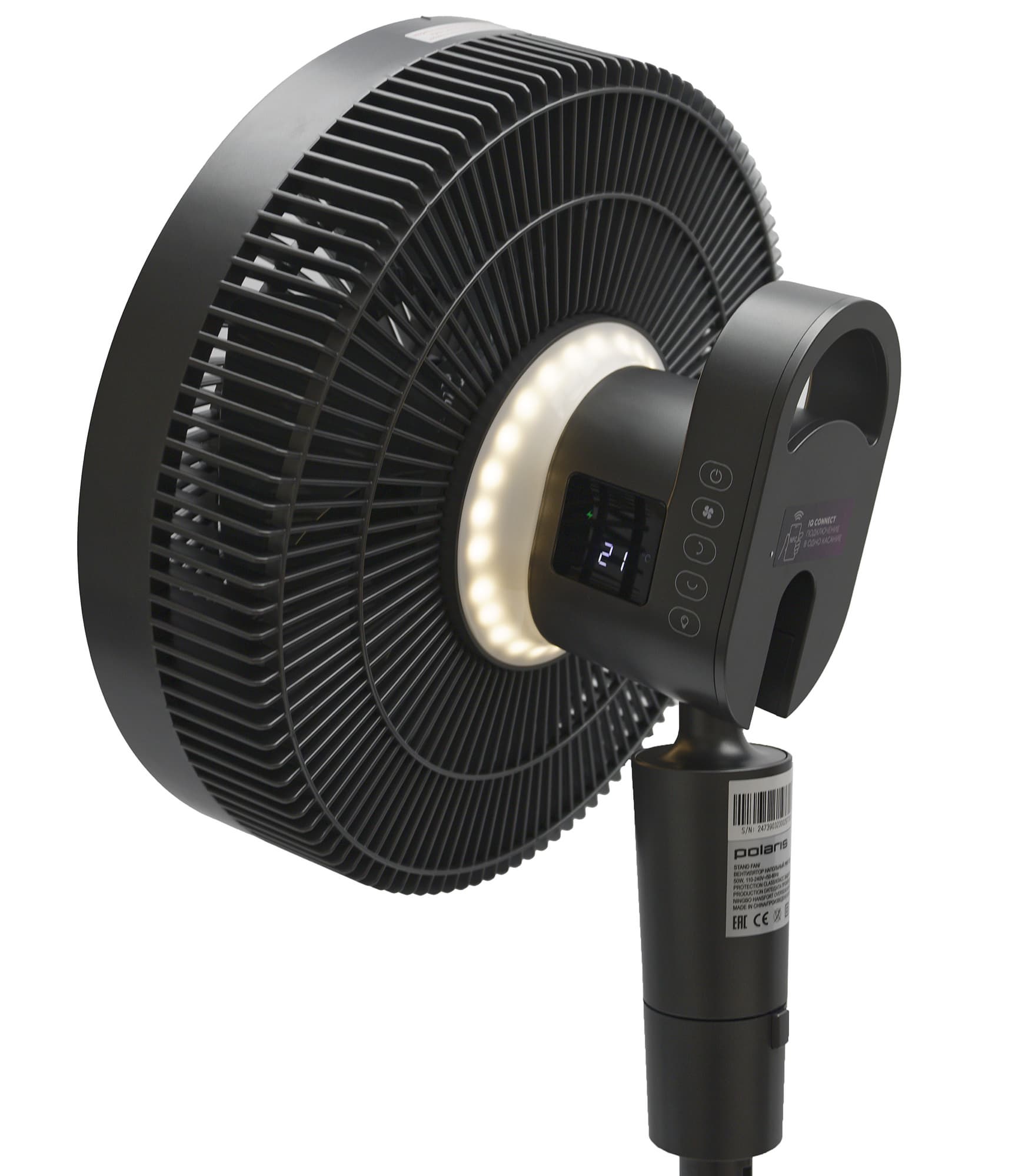 Polaris PSF 3315 Wi-Fi IQ Home управляется с помощью пяти кнопок, расположенных на моторном блоке за крыльчаткой. Слева от них размещен светодиодный дисплей, указывающий текущую температуру в помещении, обозначающий выбранные режим, скорость работы, а также активацию таймера и подключение к Wi-Fi.