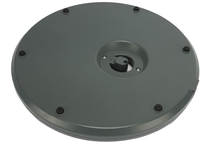 На дне пластикового круга находятся 6 маленьких резиновых ножек и круглое углубление для закручивания пластикового винта на штыре ножке, надежно фиксирующего ее на основании.