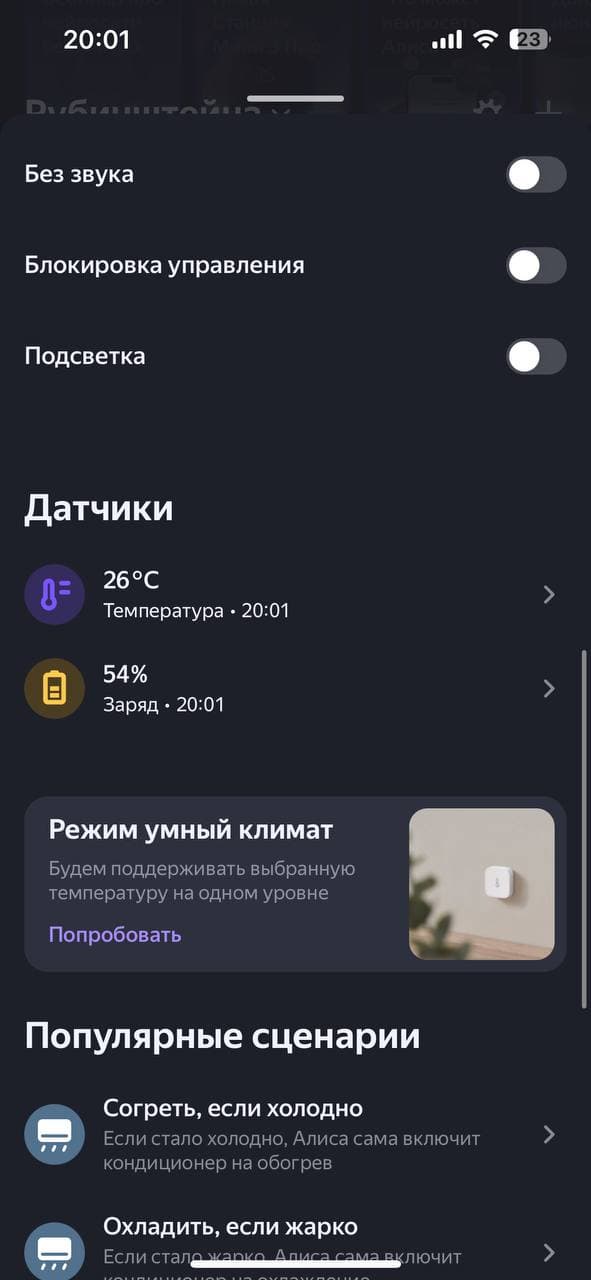 Помимо этого Алиса способна назвать температуру в помещении и уровень заряда аккумулятора — совсем хорошо!