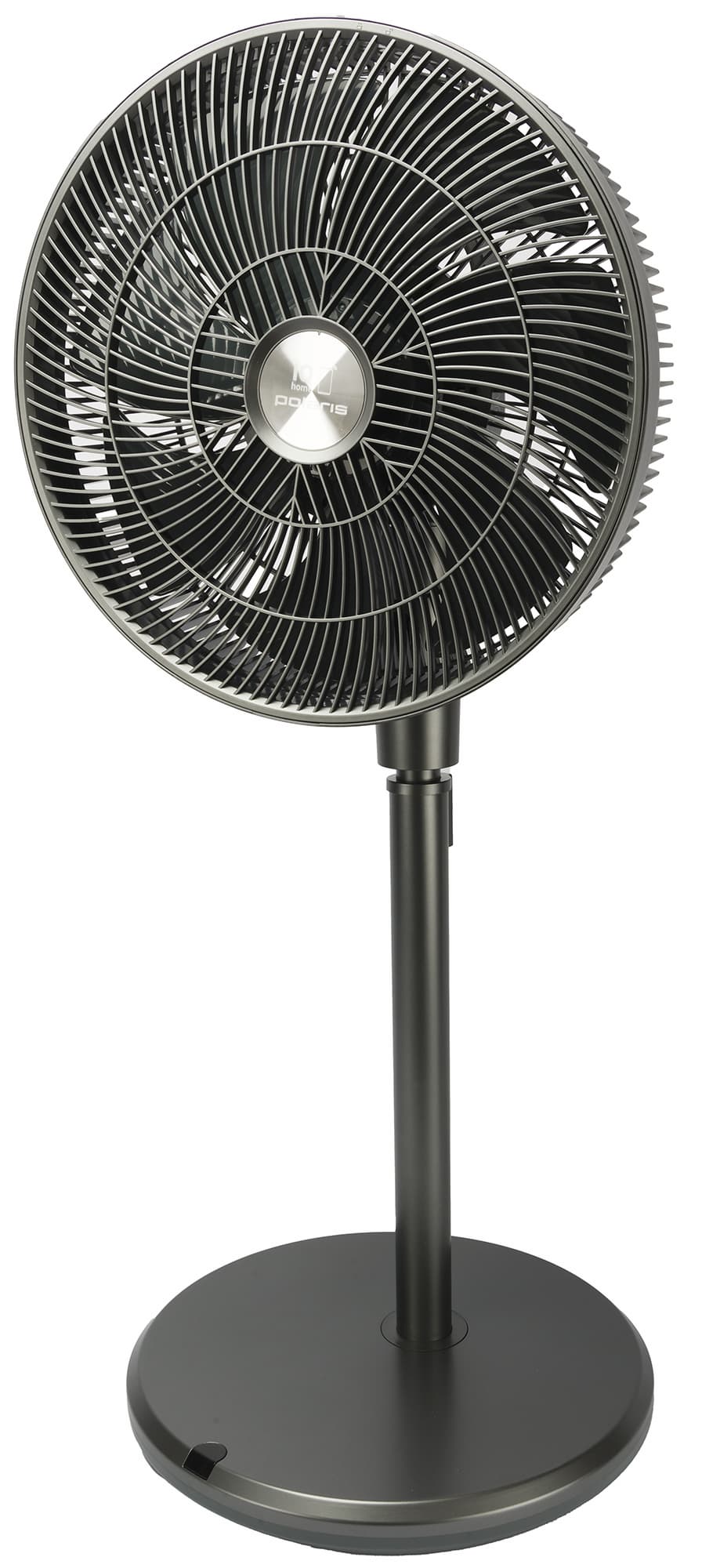 Polaris PSF 3315 Wi-Fi IQ Home весьма презентабелен внешне, такой прибор нет желания прятать с глаз, как техническое недоразумение не вписывающееся ни в один интерьер, а наоборот — им хочется лишний раз полюбоваться. Сразу видна качественная сборка без щелей и люфтов, а благородный графитовый цвет смотрится дорого, аккуратно и стильно. У прибора классические габариты напольного вентилятора: максимальная высота — 110 см, наименьшая — 93-100 см (в зависимости от степени наклона корпуса).