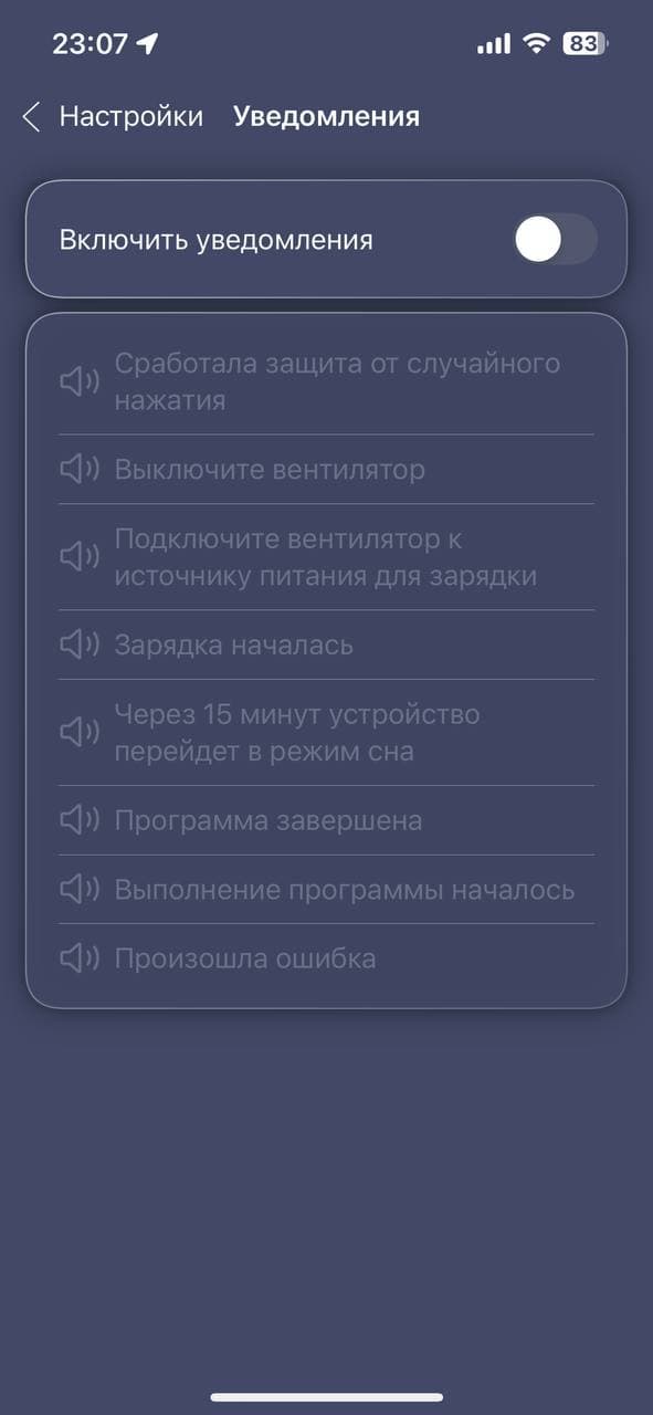- настройки — включение/отключение звуковых сигналов, блокировка панели управления, включение 3D-обдува, установку расписания, калибровку и возможность отключения прибора в глубокий сон для зимнего хранения