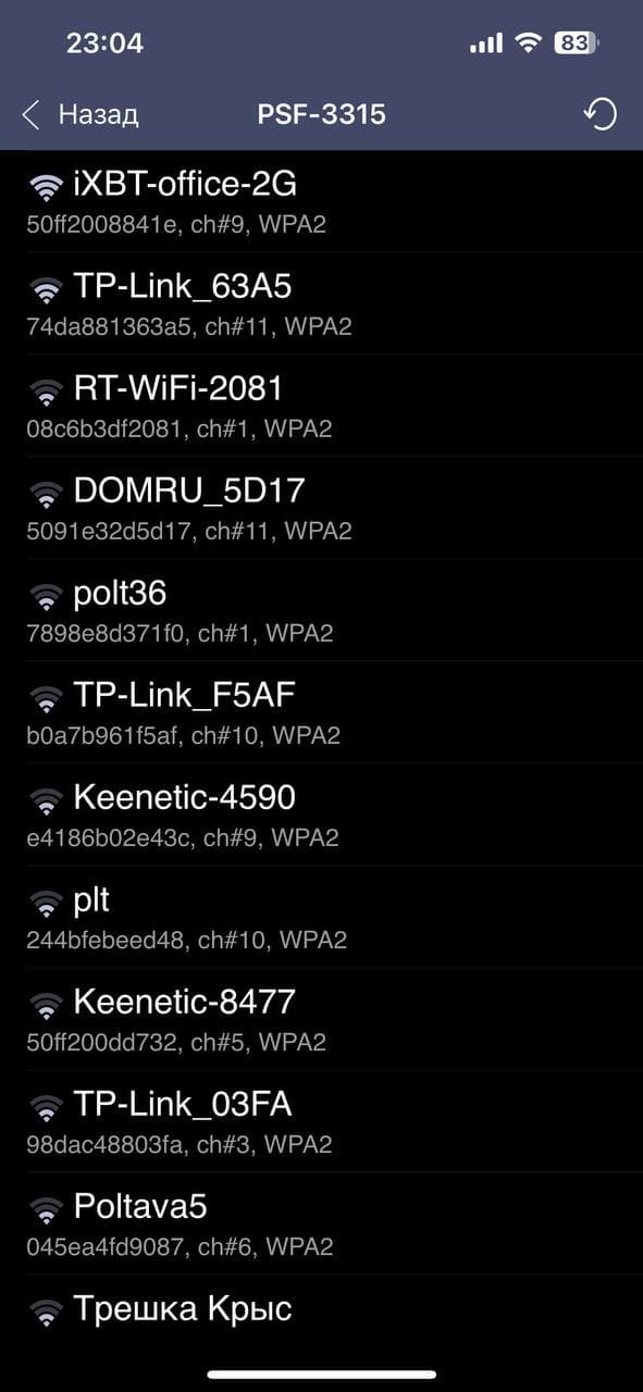 Выбираем нужный нам Wi-Fi (5 ГГц традиционно не поддерживается, поэтому подключаемся только в диапазоне 2,4 ГГц) и попадаем на главную страницу.
