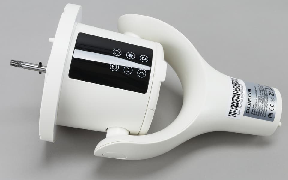 При отключении вентилятора он «паркуется», т. е. возвращается в исходное состояние — лопасти расположены перпендикулярно плоскости пола, моторный блок «смотрит» вперед.