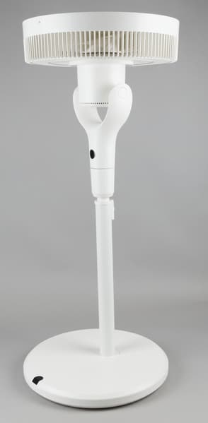 Следующий элемент — вертикальная штанга. Она у нашего вентилятора телескопическая, а значит, мы можем отрегулировать высоту вентилятора в пределах от 75 до примерно 93 см (если считать от пола до центра лопастей).