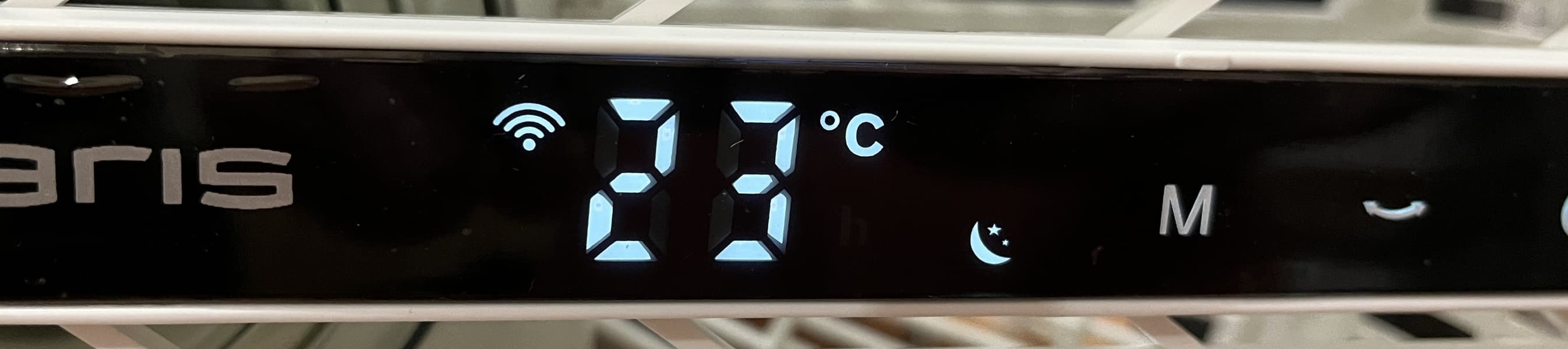 При включении «Ночного режима» на дисплее загорается индикатор полумесяца со звездами, а через 7 секунд дисплей гаснет (исключением остается индикатор Wi-Fi — он будет подсвечиваться даже в ночном режиме). Скорость обдува в данном режиме будет снижаться на 1 уровень каждые 30 минут до минимального значения.