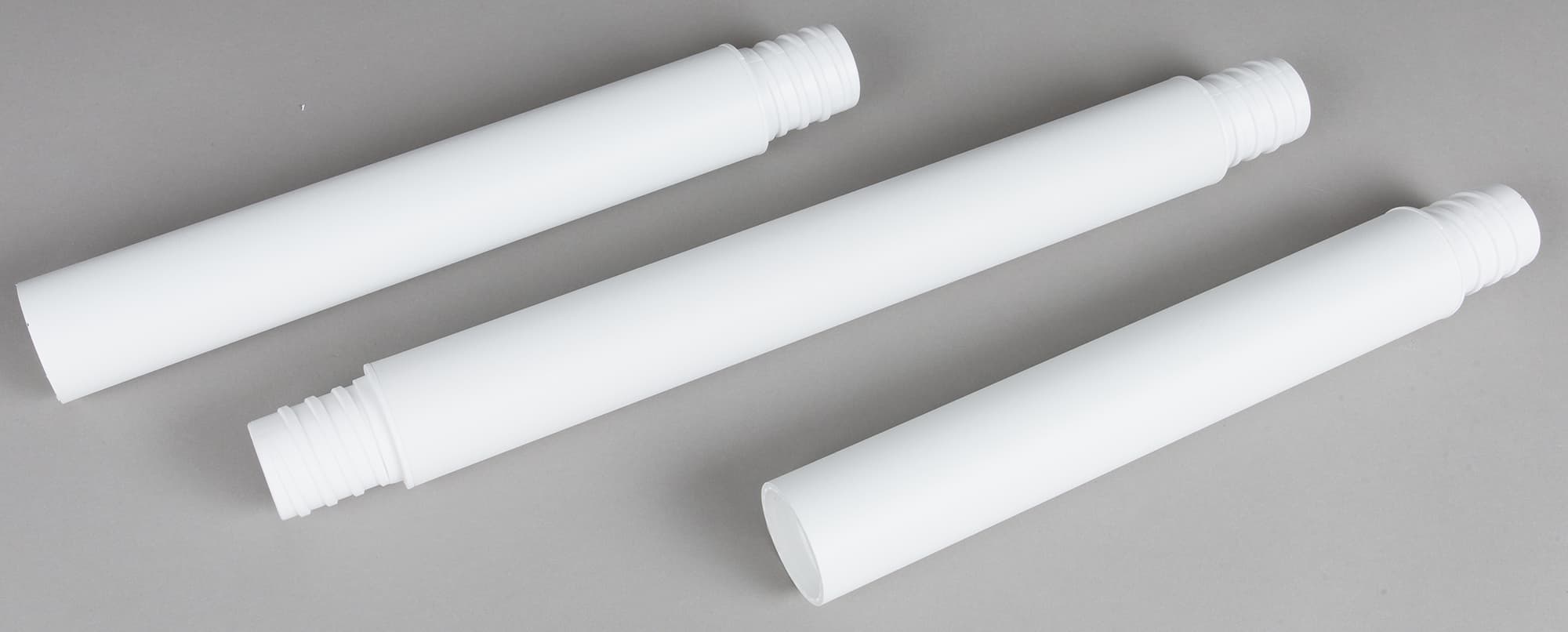 Одна из частей ножек является основной — без нее вентилятор собрать не получится. Она имеет два выступающих края с объемной резьбой и чуть увеличенную длину — 28 сантиметров, против 23 сантиметров у малых. Если потребуется минимальная высота устройства, то именно длинная деталь будет служить ножкой. Дело в том, что место крепления и в основании, и в моторном блоке углублено, поэтому с обеих сторон соединительный элемент ножки должен выступать.