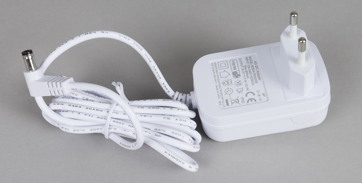 Прочный шнур электропитания с адаптером имеет длину 1,8 метра.