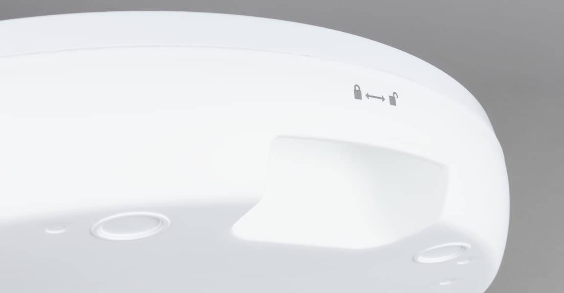«Блин» основания пластиковый и состоит из двух частей — верхней и нижней. Открывается/закрывается он путем поворота верхней части против часовой стрелки.
