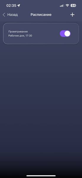 Редактор расписаний работает как будильник и запускает нужную комбинацию настроек в выбранный день недели в нужное время.