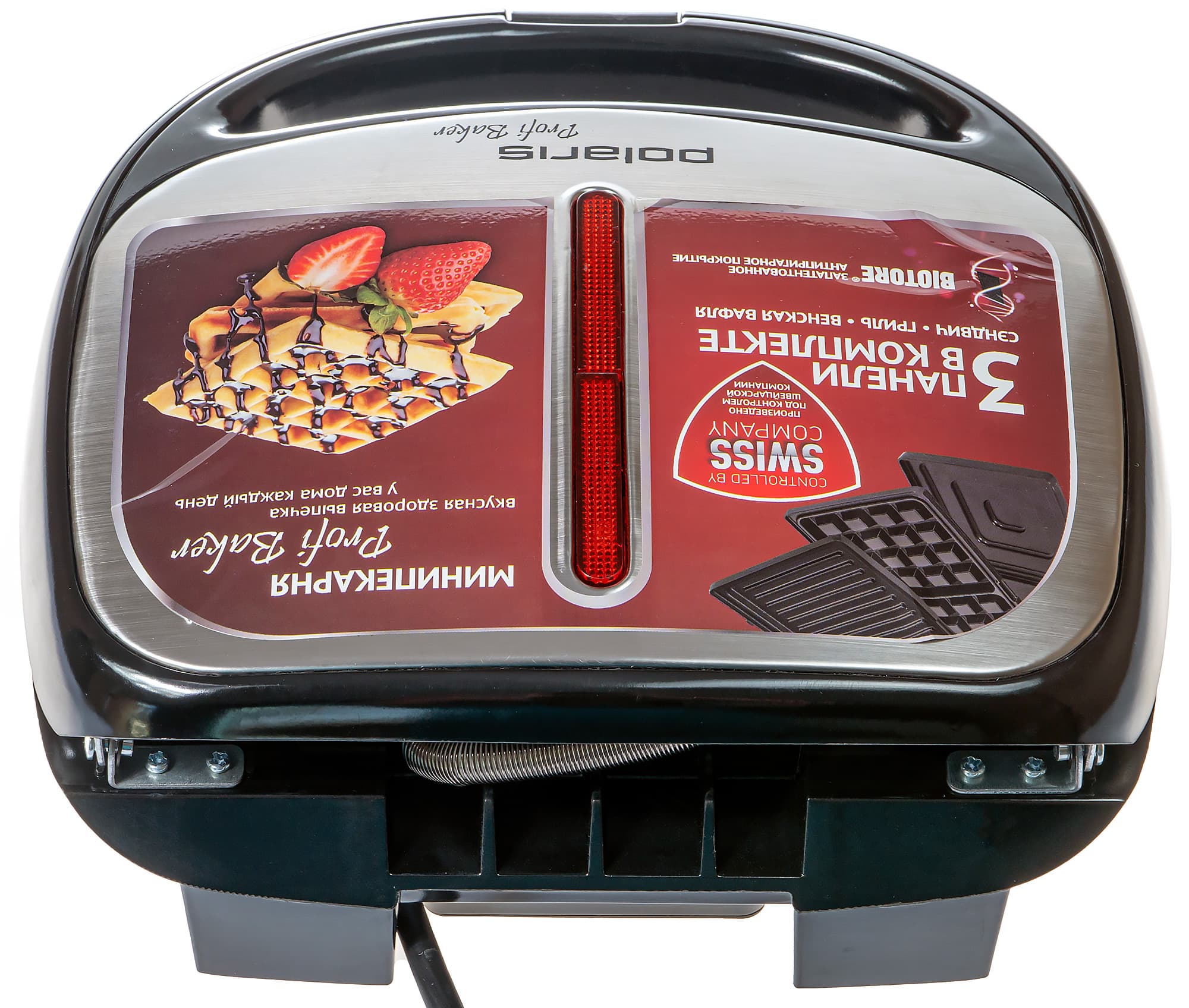 Минипекарня (вафельница, сэндвичница) Polaris PST-0203 — это простой прибор, предназначенный для приготовления вафель, горячих бутербродов и прочих горячих блюд небольшого размера. Ключевые достоинства данного прибора — три комплекта сменных панелей: для вафель, горячих бутербродов и гриля. На полноценный гриль, конечно, данное устройство не тянет. Зато может носить гордое название «вафельницы» или «бутербродницы».
