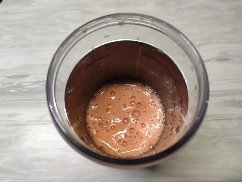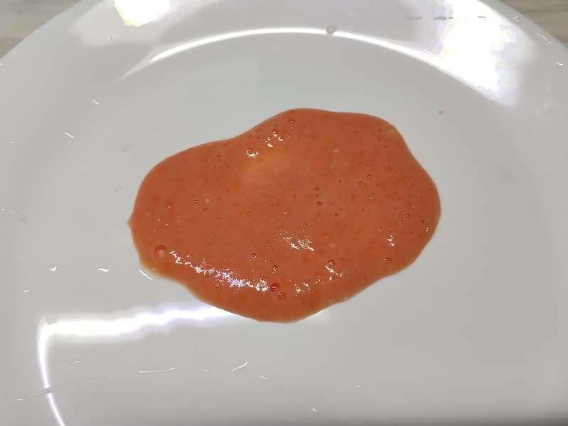 Мы получили однородную воздушную томатную смесь с мельчайшими частицами кожуры и семечек.