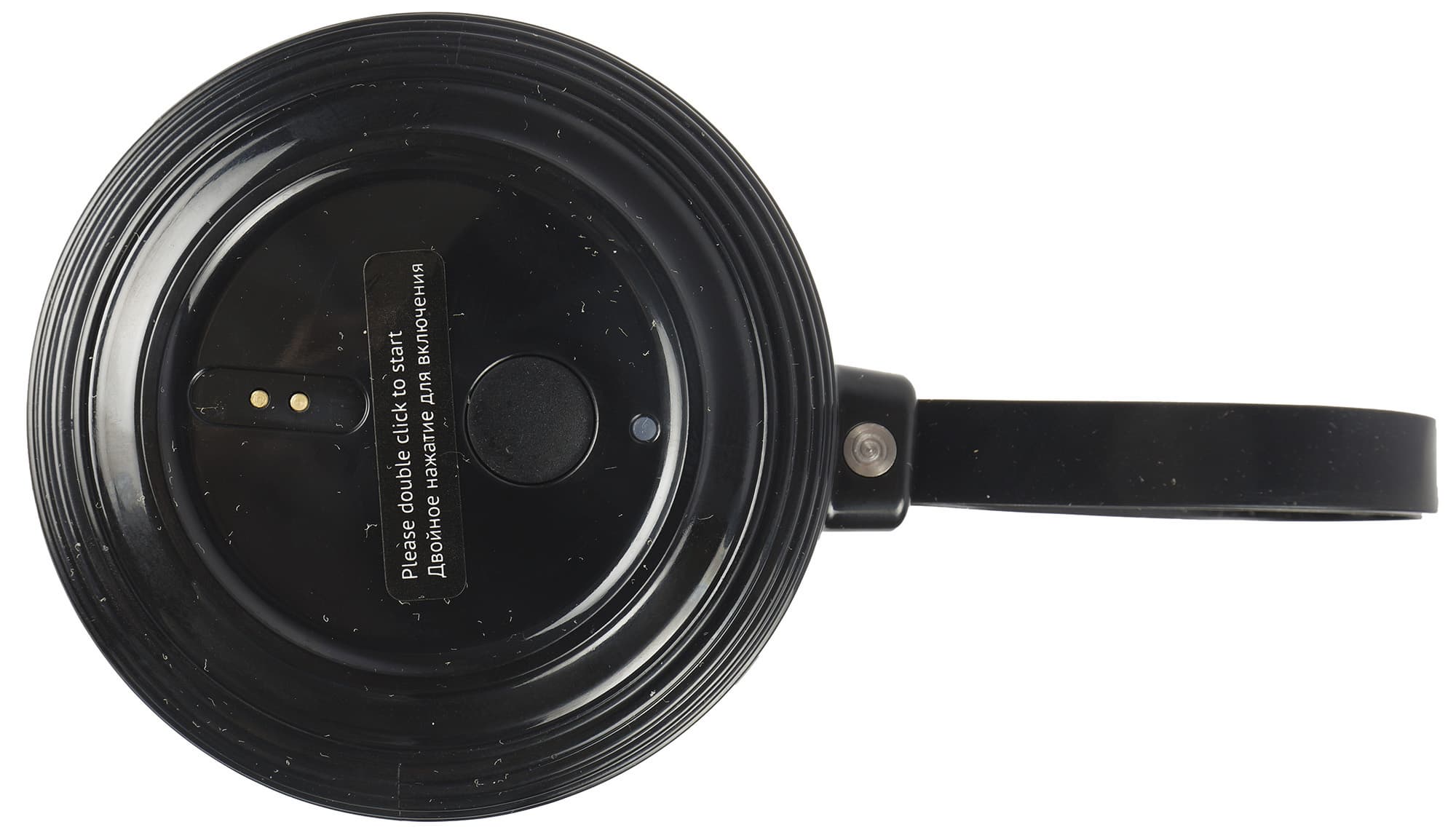 Крышка прибора также является и моторным блоком. Сверху она имеет всего одну кнопку и разъем для подключения магнитного зарядного устройства. По краям крышки пластик скруглен и имеет рифленую поверхность для лучшего контакта с кожей и более простого откручивания/закручивания крышки.